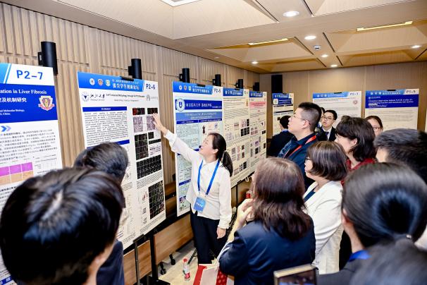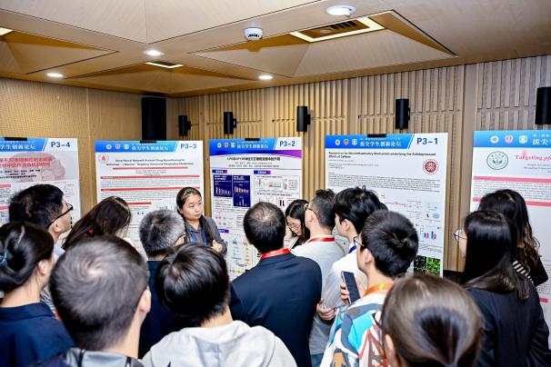 18日下午,来自11所教育部基础医学拔尖学生培养计划2.0基地的评委老师分为两组对31项墙报展示进行了评审。同学们在墙报前对自己的研究项目进行详细介绍,研究内容涵盖肿瘤、药理与代谢、神经科学、免疫与病原、干细胞与发育等多个前沿领域。围绕研究内容,评委老师给予了细致评审指导,参评同学也与评委老师及现场观众进行了交流互动。