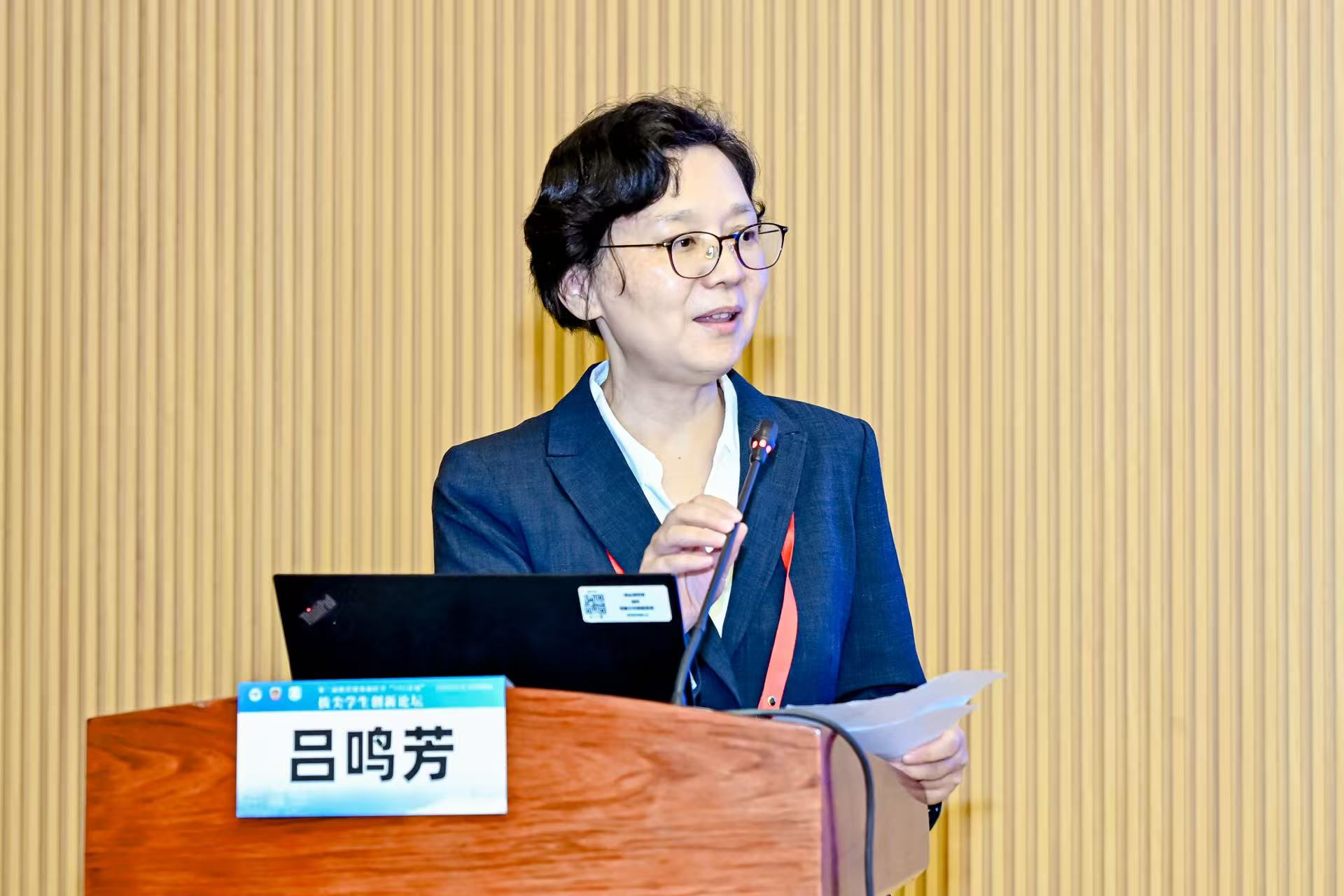 吕鸣芳代表复旦大学基础医学院向与会师生表示欢迎。她表示,本次论坛是为本科生打造的交流展示平台,希望同学们可以在本次论坛中多思考、多交流,碰撞出思想火花。