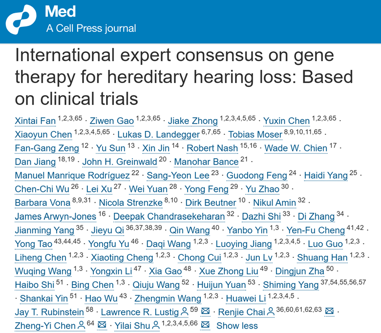 遗传性耳聋基因治疗国际专家共识在Med发表