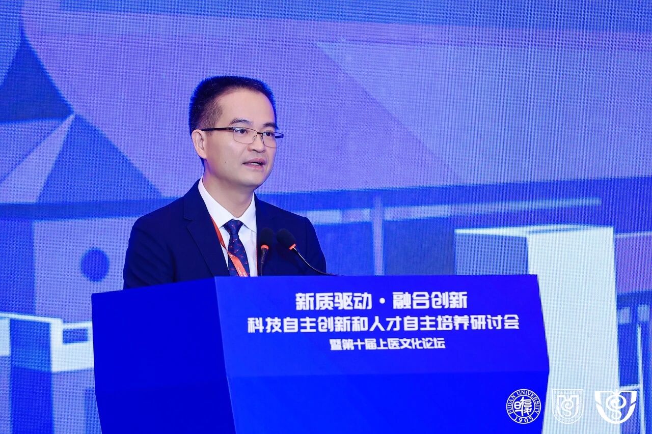 上午9时,论坛在主题短片中拉开序幕。复旦大学校长、上海医学院院长、中国科学院院士金力在致辞中指出,回首近百年的办学历程,“人才自主培养”始终是复旦上医执着坚守的初心,“科技自主创新”始终是复旦上医矢志不渝的追求。他表示,上医一要以新质驱动引领发展,聚焦发展重大疾病精准诊治、未来健康与医学前沿、公共卫生治理与全球健康、新药创制、智能医学等领域,布局未来学科、建设急需专业、培育交叉方向;二要以融合创新赋能改革,构建拔尖创新人才自主培养体系,培养“干细胞式”医学人才,加强“校—地—企—医”协同,全面推进医教研产融合;三要为国为民坚定使命,完善“两纵四横”附属医院体系,高水平建设国家医学中心、国家临床医学研究中心、国家区域医疗中心和国家级医疗质量控制中心,提升医疗帮扶能级,发挥医疗服务“国家队”示范引领作用。