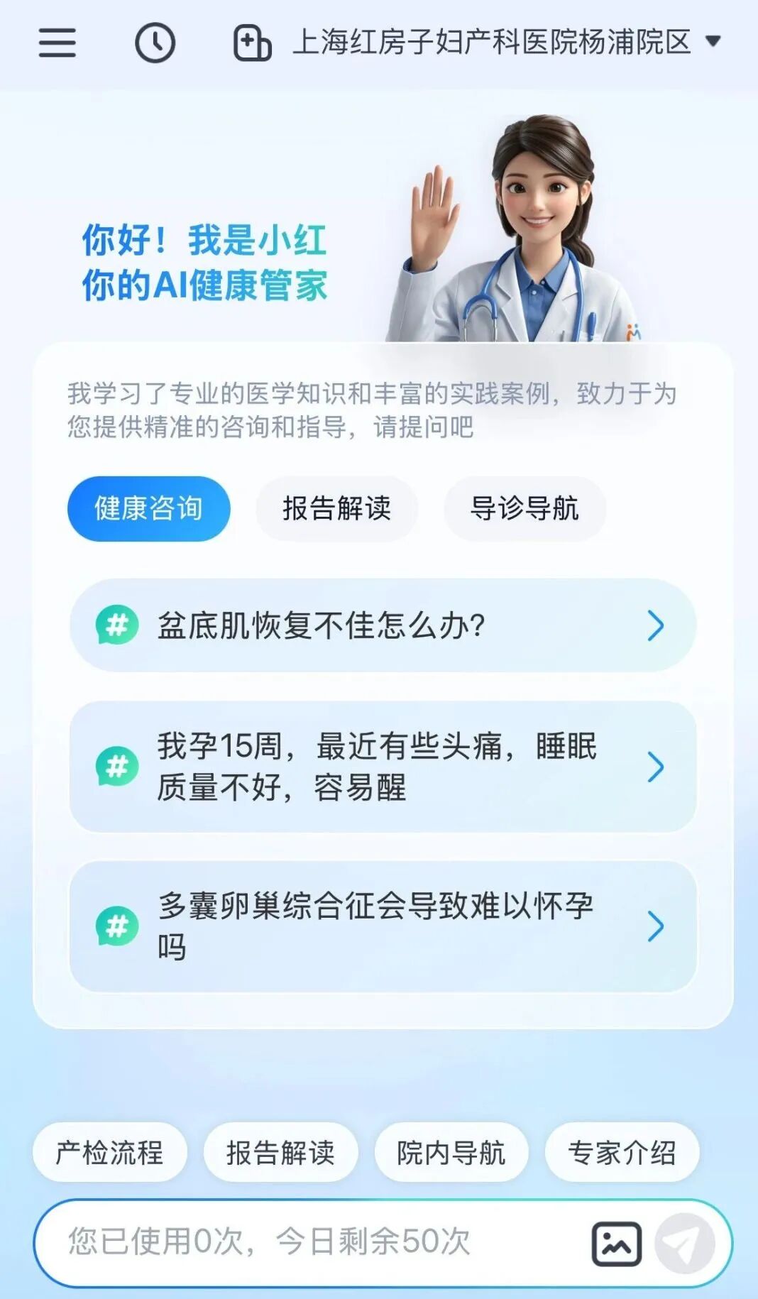 “糖耐检查前能不能吃东西?”“产后盆底肌恢复不好怎么办?”“报告上的‘指标异常’到底是什么意思?”对于孕期、产后女性来说,这些疑问常常突然冒出来,而妇产科医院的“小红AI助理”,就是那位24小时在线的“贴心电子闺蜜”。
