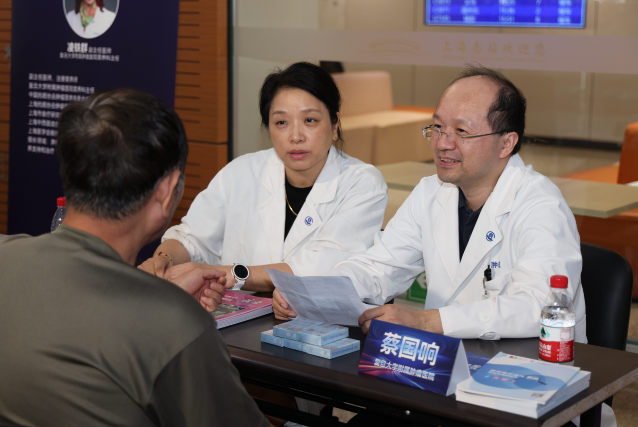 义诊现场,来自肿瘤医院和上海市徐汇区漕河泾街道社区卫生服务中心的16位医生一字排开,为往来候车的旅客们提供常见肿瘤防治、营养、中医、应急救护等咨询服务。张老伯不仅得到了肿瘤医院大肠外1科蔡国响教授的病情解读,还收获了营养科凌轶群教授、中西医结合科宋利斌教授的膳食建议,以及社区医生的居家血压管理指导,不用专程跑医院就解决了健康困惑。