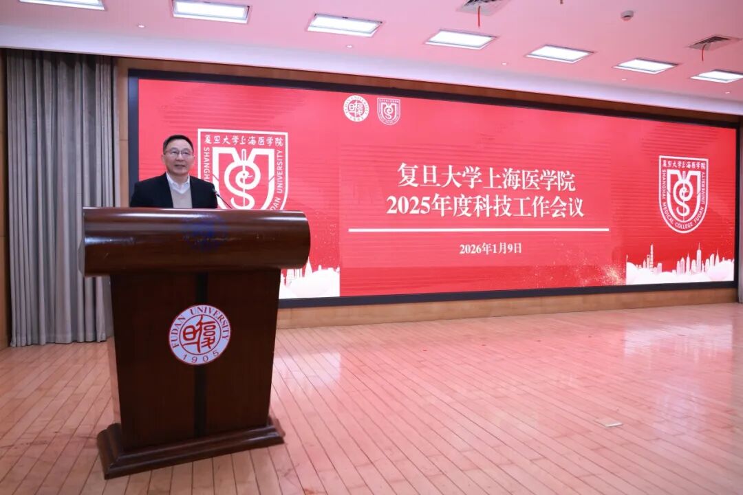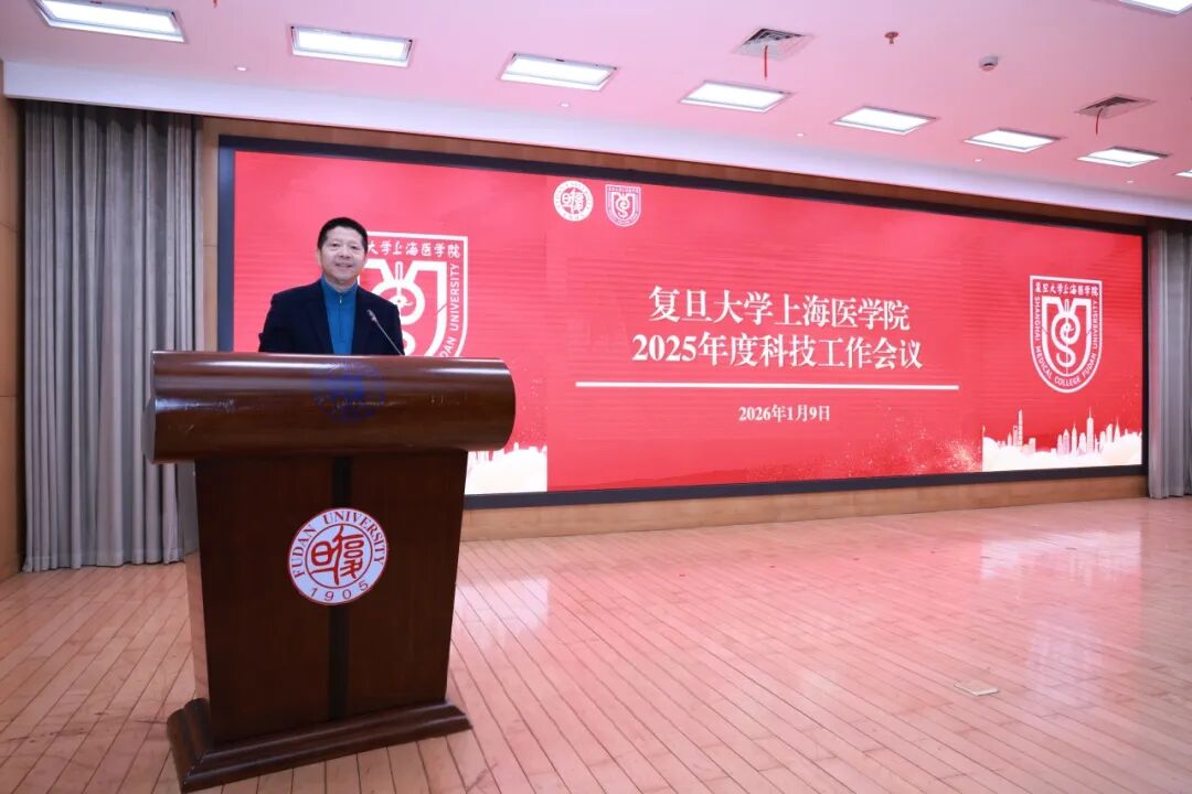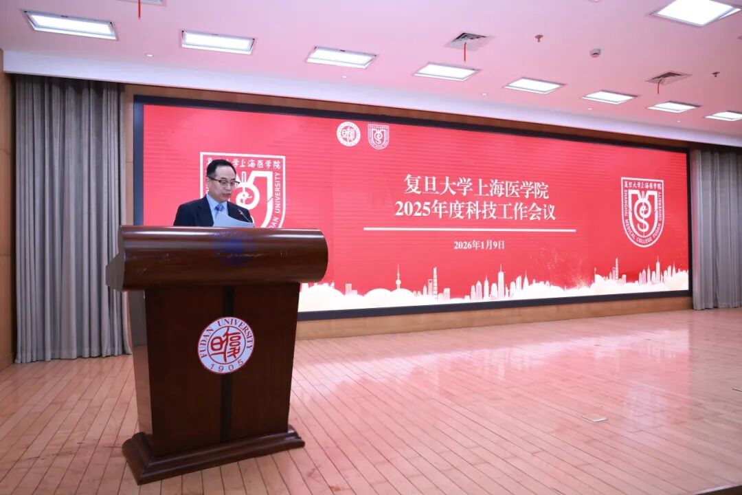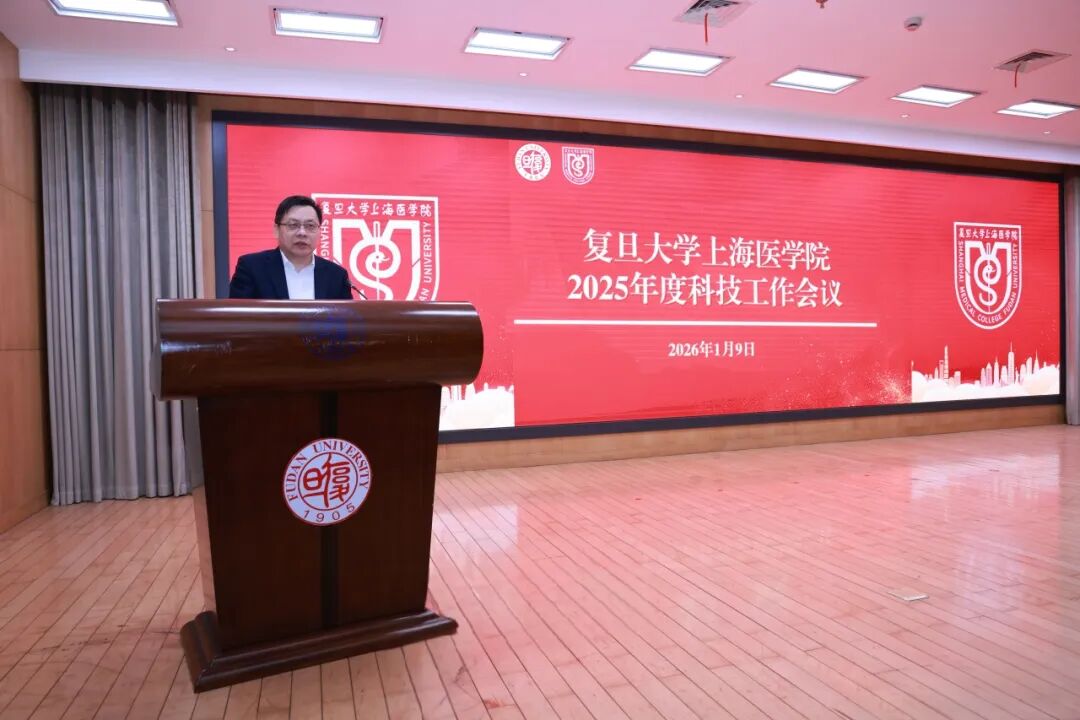 1月9日上午,复旦上医2025年度科技工作会议在明道楼举行。会议回顾过去一年来,复旦医学在科技创新、平台建设、成果转化等方面取得的丰硕成果,表彰在科研管理、成果转化等方面作出突出贡献的个人和团队,并展望新一年的发展方向,进一步明确目标、凝聚力量,推动复旦医学科技事业再上新台阶。