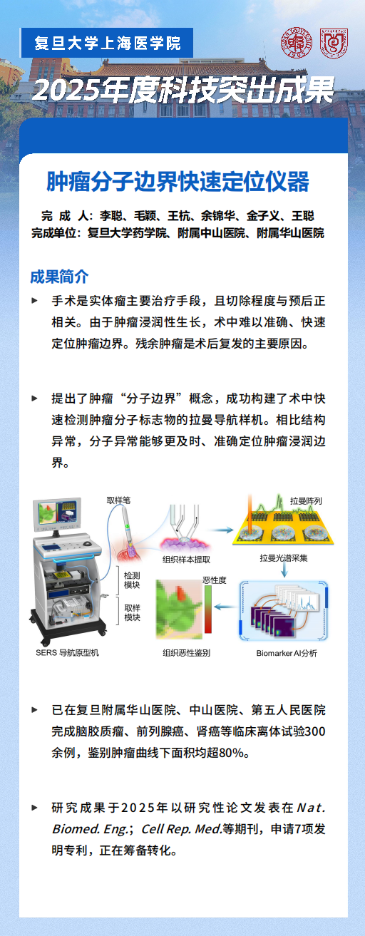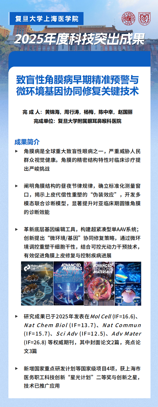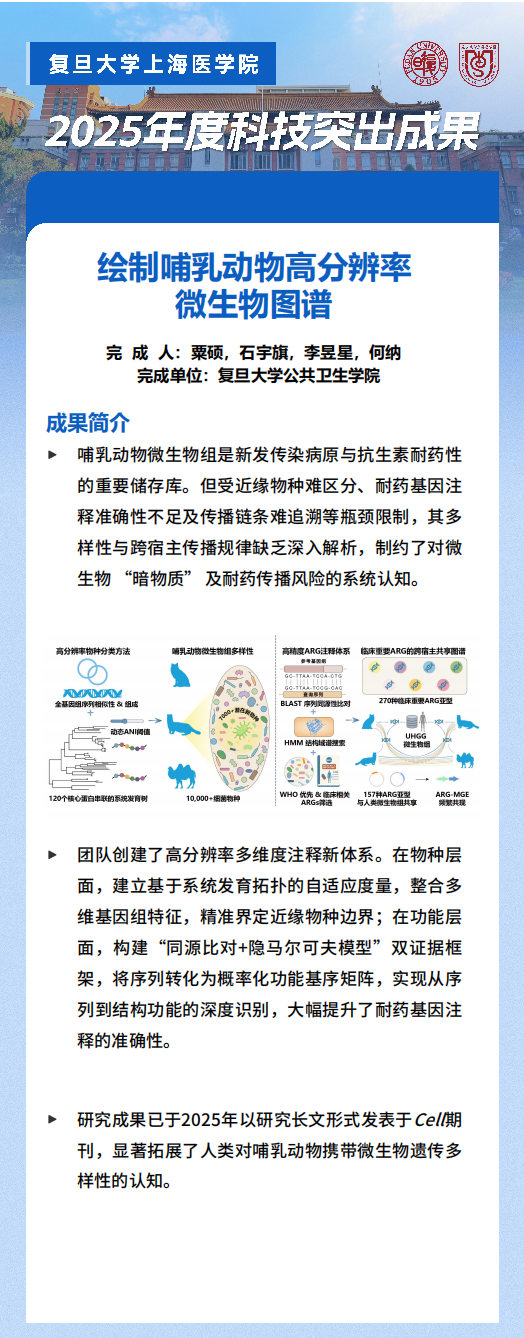 他强调,立足党的二十届四中全会“加快高水平科技自立自强”战略部署,复旦上医要锚定世界顶尖目标,融入国家和上海创新体系,对接学校“十五五”规划,加快虹桥医学创新园区建设,聚焦重大疾病精准诊治、未来健康与医学前沿、公共卫生与健康治理、新药创制等战略领域和重点方向,推动多学科交叉融合,引领医学科学智能范式变革,构建产学研用深度融合的科技创新体系和创新生态。科研工作者要以国家需求为根本,弘扬科学家精神,在基础研究与应用研究上持续突破,献礼复旦上医创建百年。