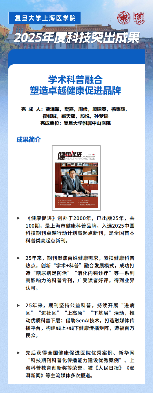 科普领域,3项成果创新传播形式,有效普及健康知识,助力健康上海建设。