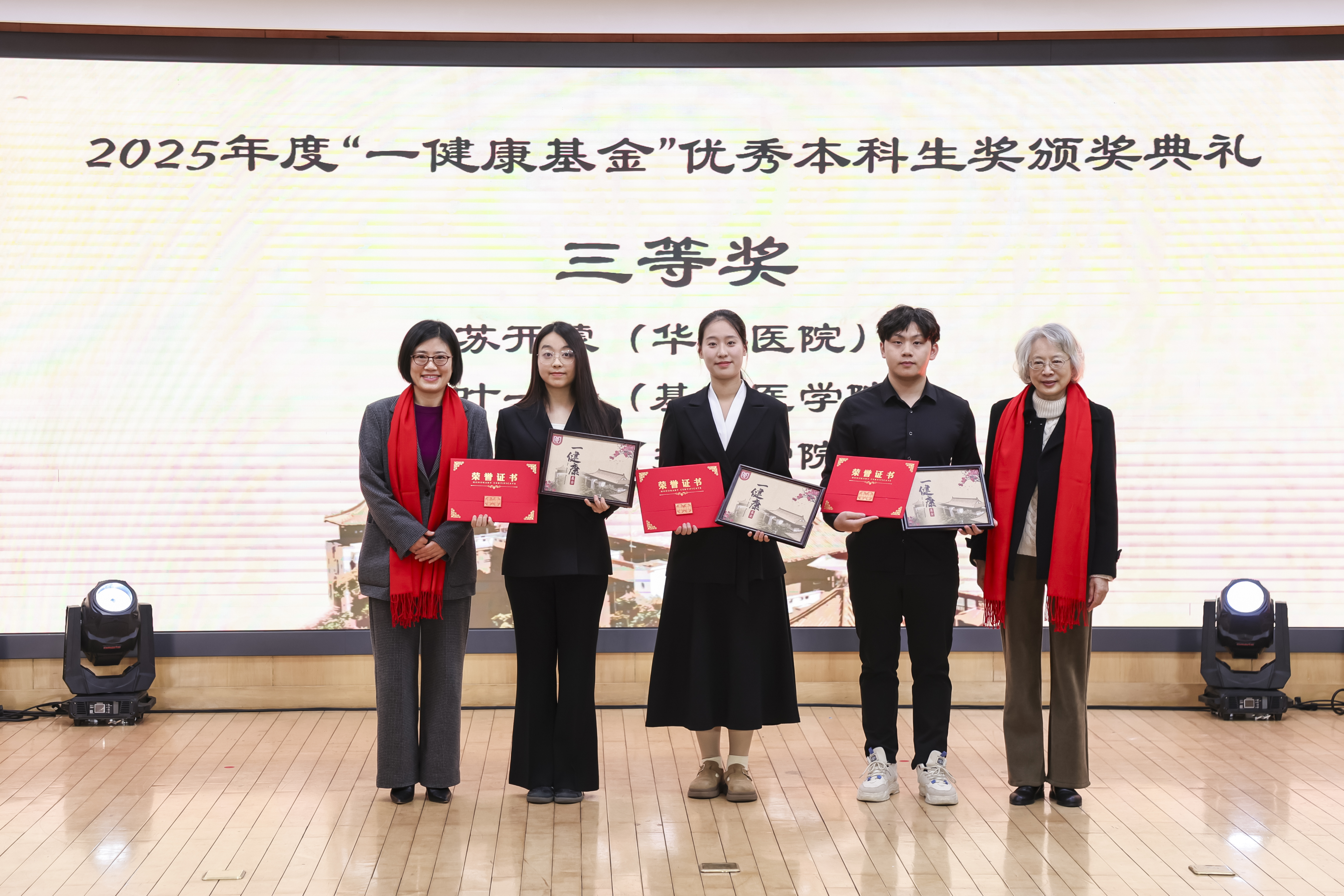 复旦大学上海医学院原党委书记程刚,上海市建国社会公益基金会秘书长庄乾坤颁发2025年度“一健康基金”优秀本科生奖