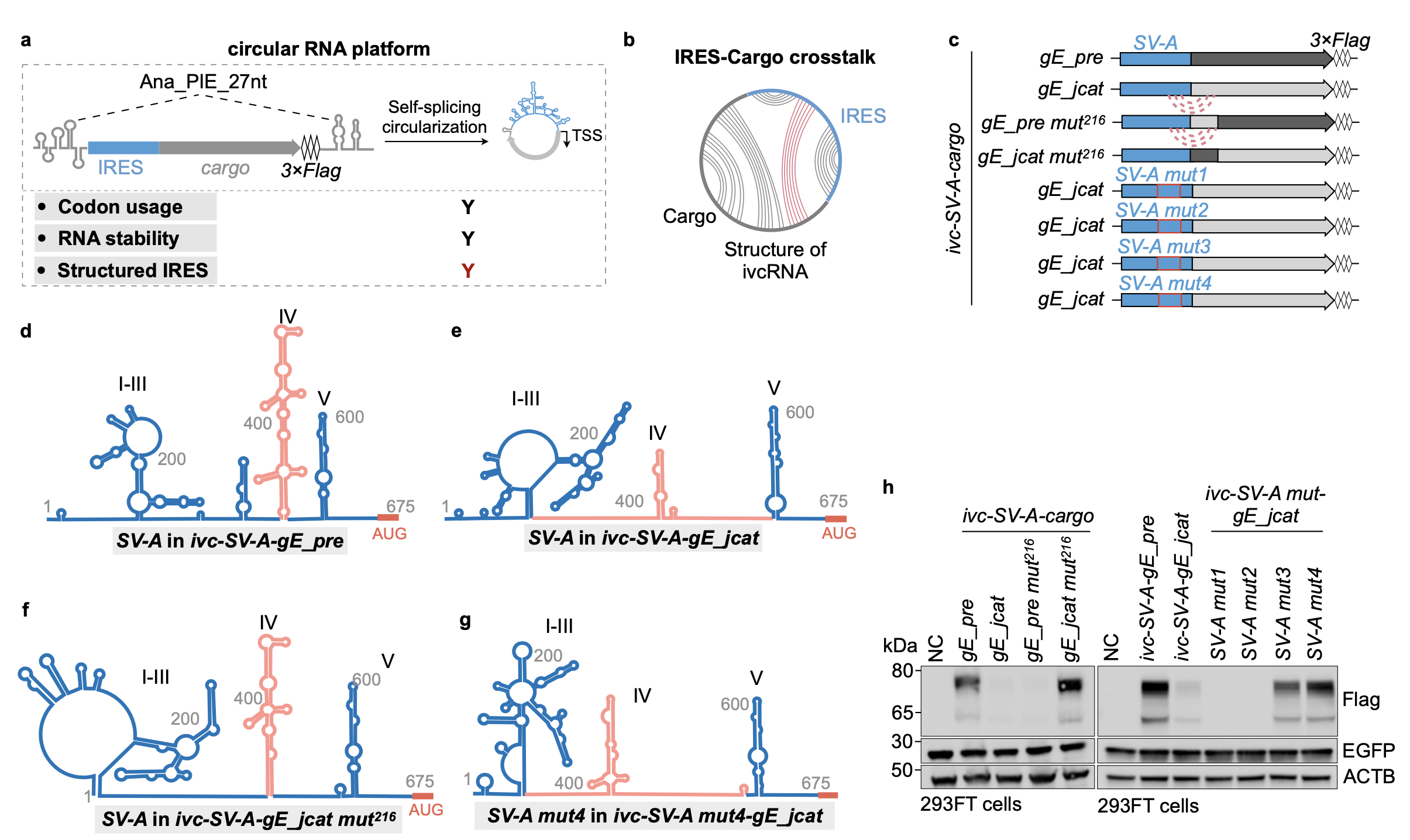 图. IRES-cargo的相互作用破坏IRES结构完整性,进而抑制ivcRNA蛋白表达,解开IRES-cargo之间的不利配对后恢复SV-A的高效翻译能力