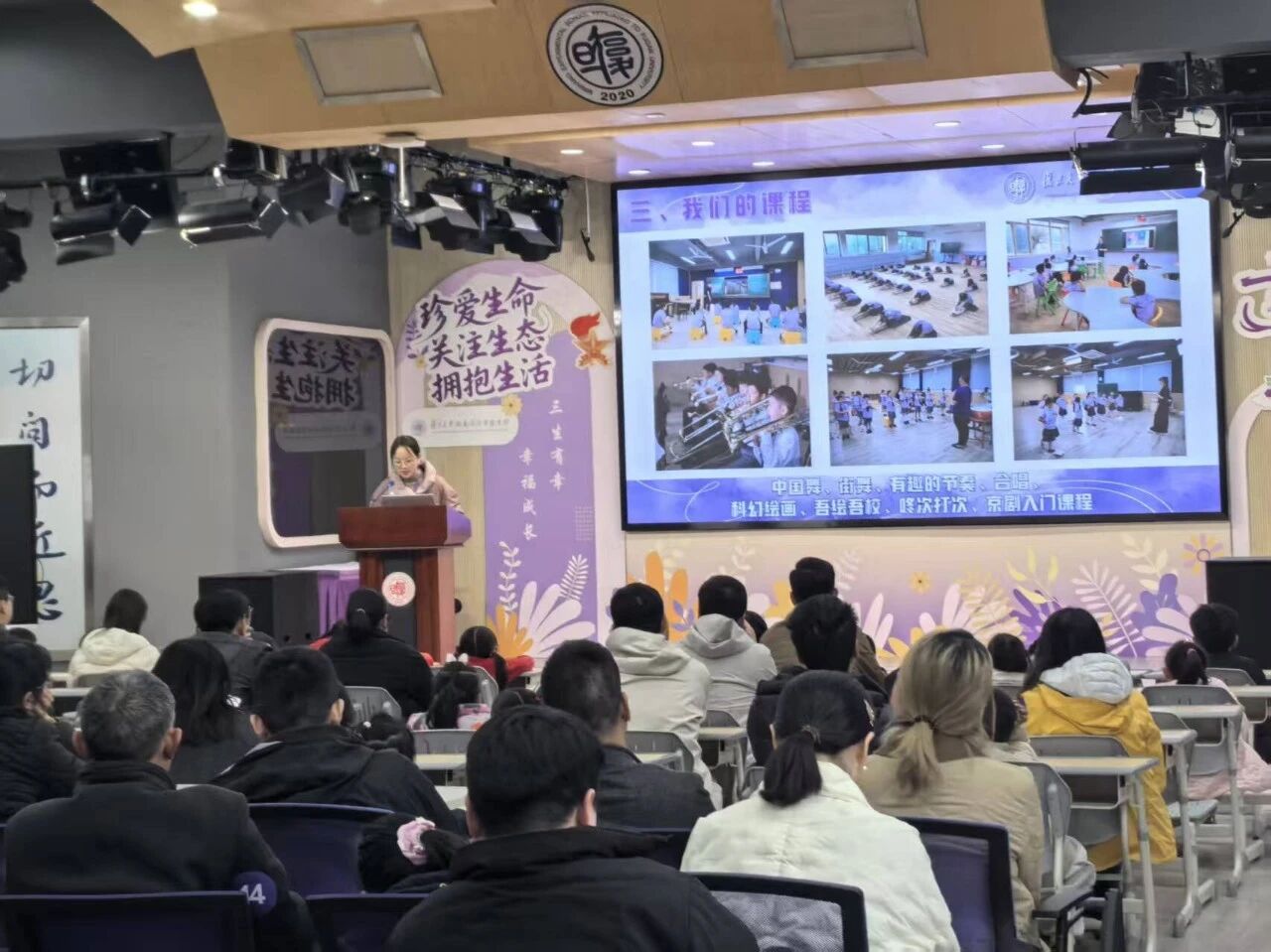 本次专题宣讲采用线上线下相结合的形式举行。闵行附校教师围绕“我们的校园”“我们的团队”“我们的课程”“我们的活动”四大板块,系统介绍了学校师资力量、课程体系、特色品牌活动及办学成果,重点回应了家长普遍关心的初中部建设进展,清晰展现了新校区规划与未来办学愿景。为方便无法到场的家长同步参与,宣讲开设线上直播通道,累计近50名家长线上参会。