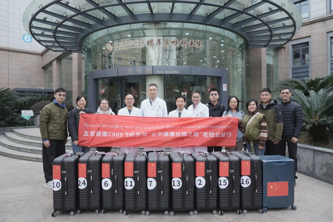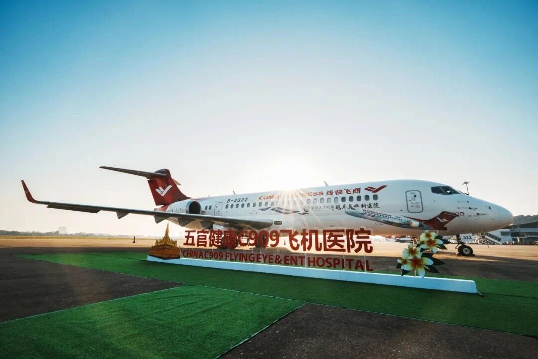 2026年2月,由复旦大学附属耳眼鼻喉科医院与中国商飞公司携手打造的五官健康C909飞机医院首次飞出国门抵达老挝首都万象