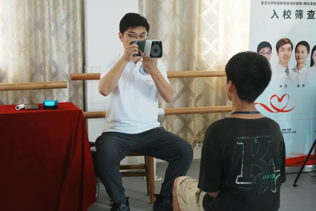 刘鎏为湖南省宜章县迎春镇碕石村承启红军小学学生开展眼健康筛查