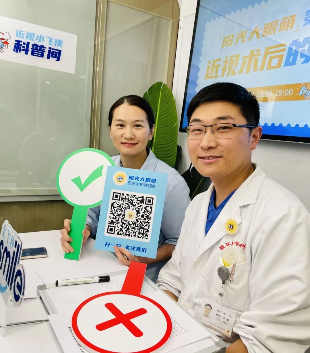 这些亲身经历,让他萌生了做科普的想法。“作为专业的医疗人员,我们有责任把正确的眼健康知识传递给更多人。”在眼视光中心,科普早已成为工作的一部分。2022年,视光中心护理团队开通“阳光大眼萌”科普公众号,他牵头制定科普计划,要求每位护士都参与科普创作,团队分成两个科普小组,由高年资护士带队,定期撰写原创科普文章,开展科普直播,解答网友提问,演示正确的用眼、护眼方法。“哪怕一次只有几十个人看,只要有人听进去了,我们的努力就有意义。”他说。