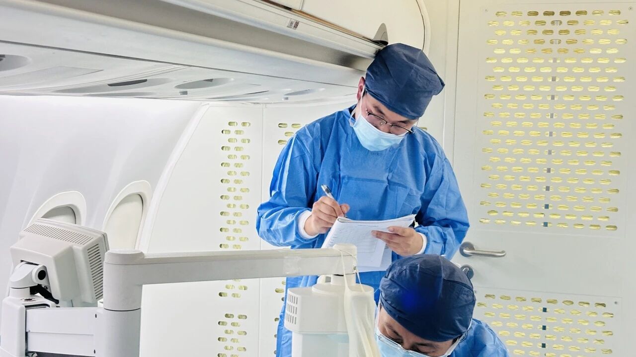 “医生、护士、行政,还有工程师,大家都是六边形战士。”临床工作之外,先遣小队还要统筹物资设备保障、队员食宿出行等大小事务。清晨6点半开工,任务结束后,晚上8点准时召开复盘会,部署第二天工作,常常忙碌到凌晨1点左右。“其中最重的OCT(光学相干断层扫描)设备,有110公斤,拆分成机身与操作台搬运,组装好,几个人再合力抬上飞机。”刘鎏笑着回忆,这些天,队员们化身“搬运工”,将手术显微镜、内窥镜系统、角膜地形图仪、眼压计、眼光学生物测量仪等大型精密设备,逐一稳妥装配至飞机医院内。汗水浸透马甲,却没人喊过一声累。