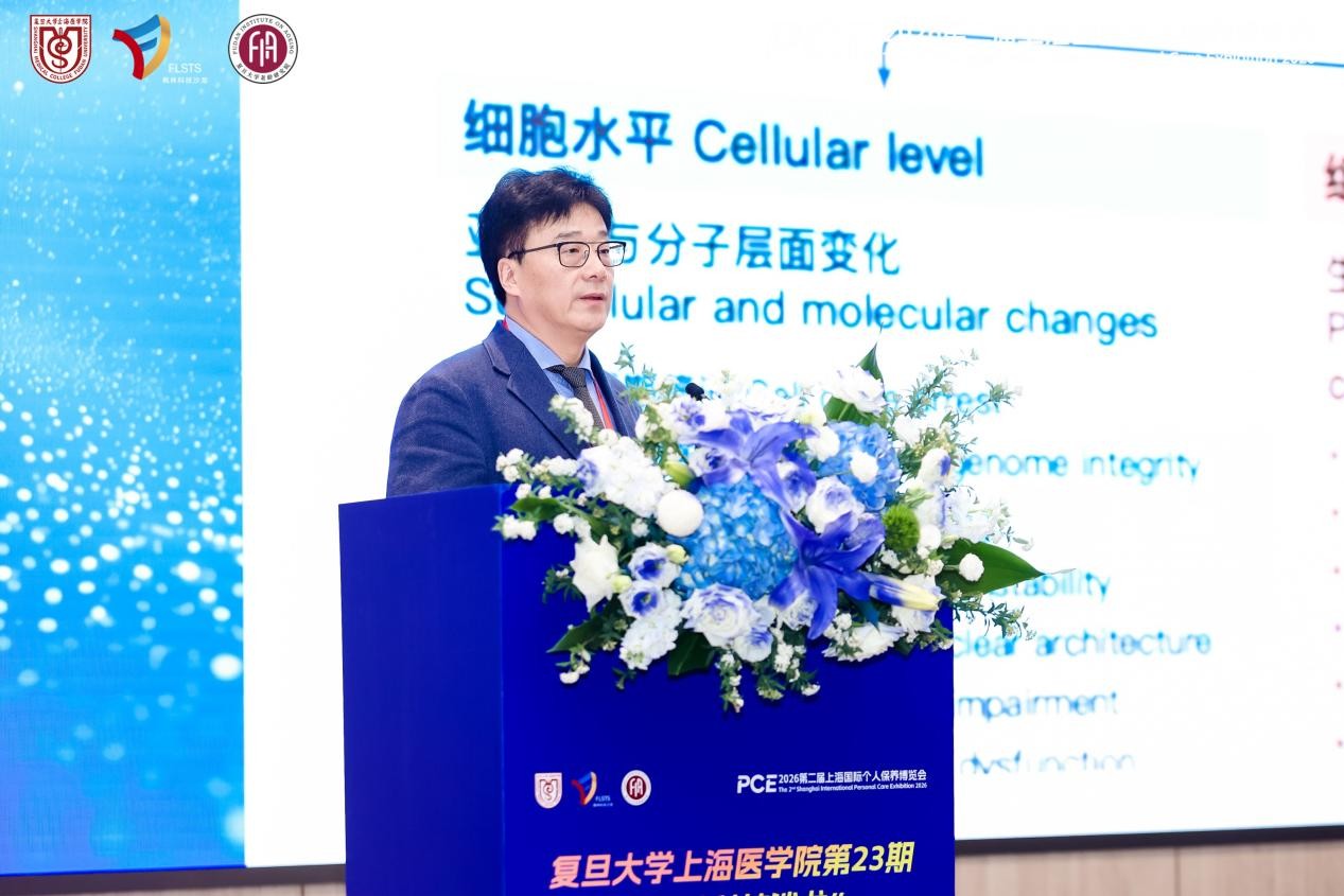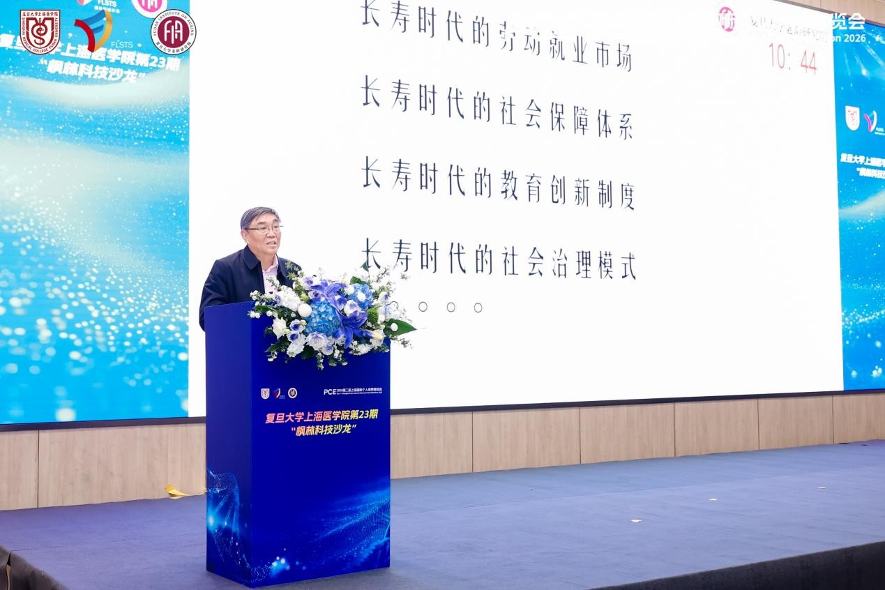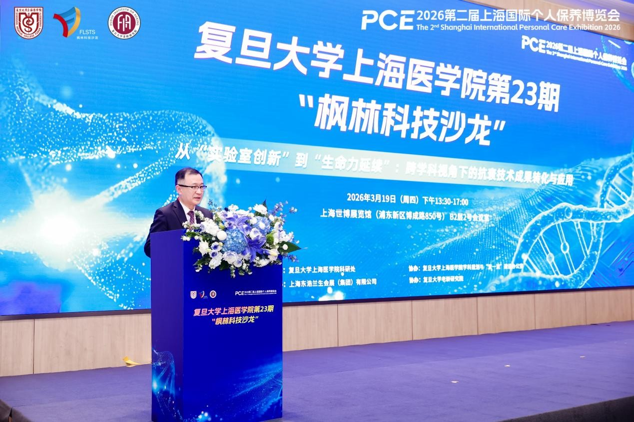 从校内交流走向国际展会,“枫林科技沙龙”正成为复旦上医成果转化的“流动展台”。在全国两会热议“银发经济”与“全生命周期健康”的背景下,复旦大学上海医学院第23期“枫林科技沙龙”于3月19日作为2026第二届上海国际个人保养博览会(PCE 2026)的核心论坛,在上海世博展览馆成功举办。本期沙龙以“长寿与衰老前沿科技实践与社会伦理思辨”为主题,首次将会场搬至国际化产业一线,旨在逐步打通“基础研究-临床-产业”的转化闭环,为应对人口老龄化提供“复旦方案”。