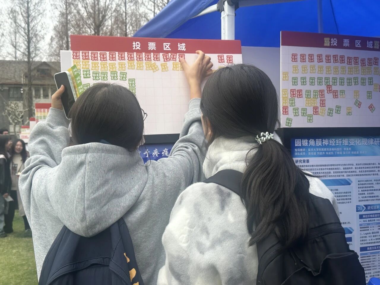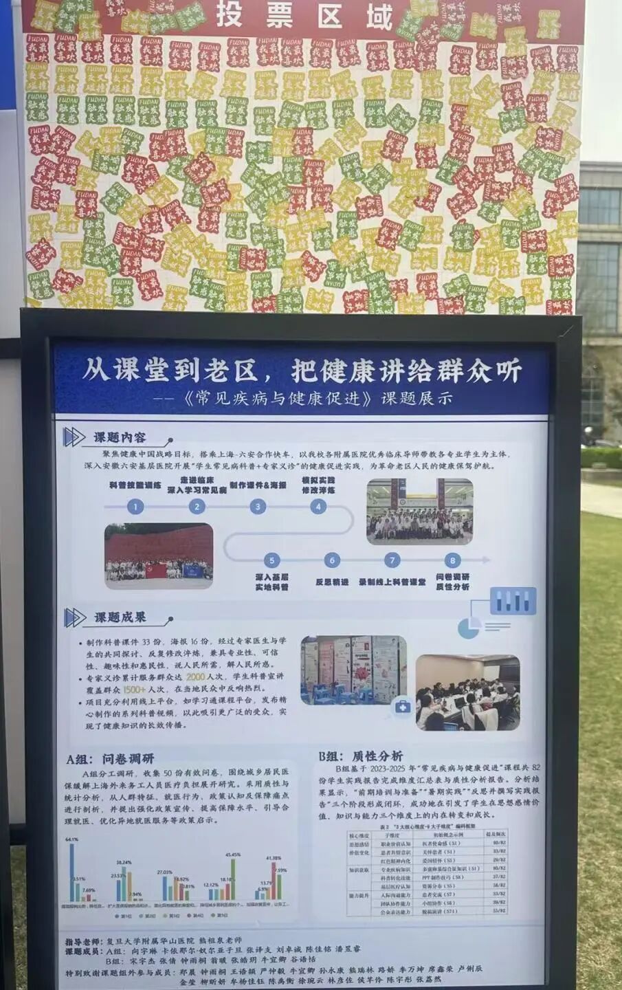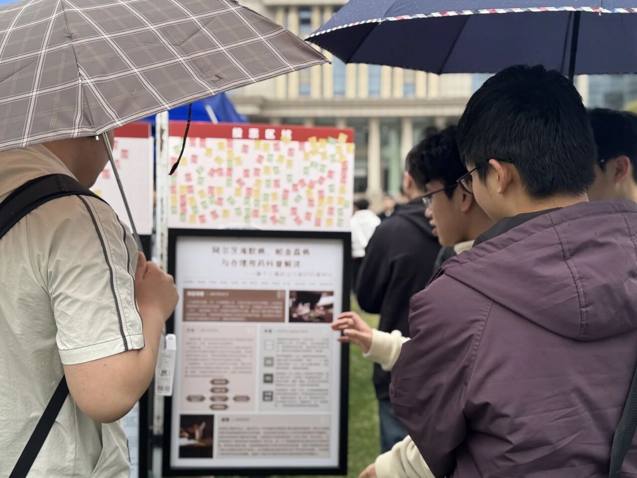 春雨渐停展板前的讨论意犹未尽投票贴纸层层叠叠这场春日“青春学术市集”是课堂的延伸,是实践的课堂更是医学与人文多学科跨界交融的生动实践