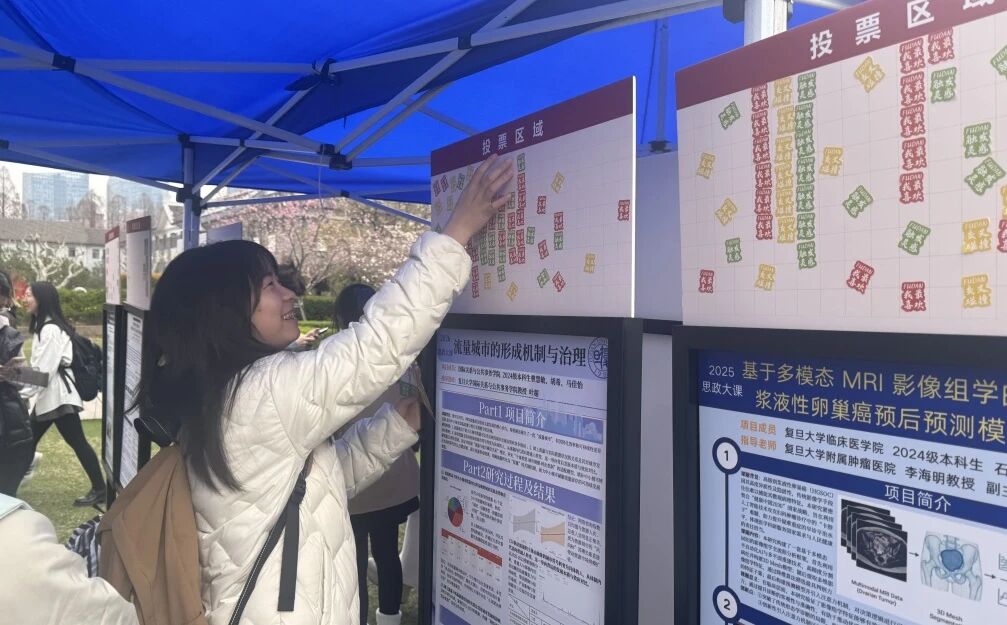 活动现场票选“我最喜欢”“交叉碰撞”“触发灵感”三类优秀课题,在跨学科交流、思想碰撞与实践展示中,打破传统课堂边界,推动思政教育与专业学习、社会实践、创新创造深度融合,让医学生在真问题、真研究、真实践中悟思想、长本领,在春日草坪上碰撞出耀眼的思想火花。
