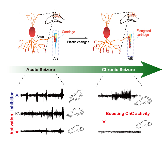 神经元异常同步放电是癫痫发作的核心病理表现。如果我们在神经元电发放的源头加以控制,将能高效地抑制异常放电的产生。神经元电发放始于轴突起始段(axon initial segment, AIS),该处分布着密集的钠离子通道,是动作电位起始爆发的区域。在众多抑制性神经元中,吊灯样细胞(chandelier cells, ChCs)的轴突末端直接支配在AIS,一个吊灯样细胞可以广泛支配数百乃至上千个的下游兴奋性神经元。理论上具备以一控百、高效抑制网络兴奋性的独特优势。早在上世纪末,癫痫的“吊灯样细胞假说”就被提出,该假说认为,人群中吊灯样细胞支配数量的差别可能决定了个体癫痫易感性的不同。但长久以来,由于研究手段的匮乏,这一假说一直未能得到实验证据的支持。