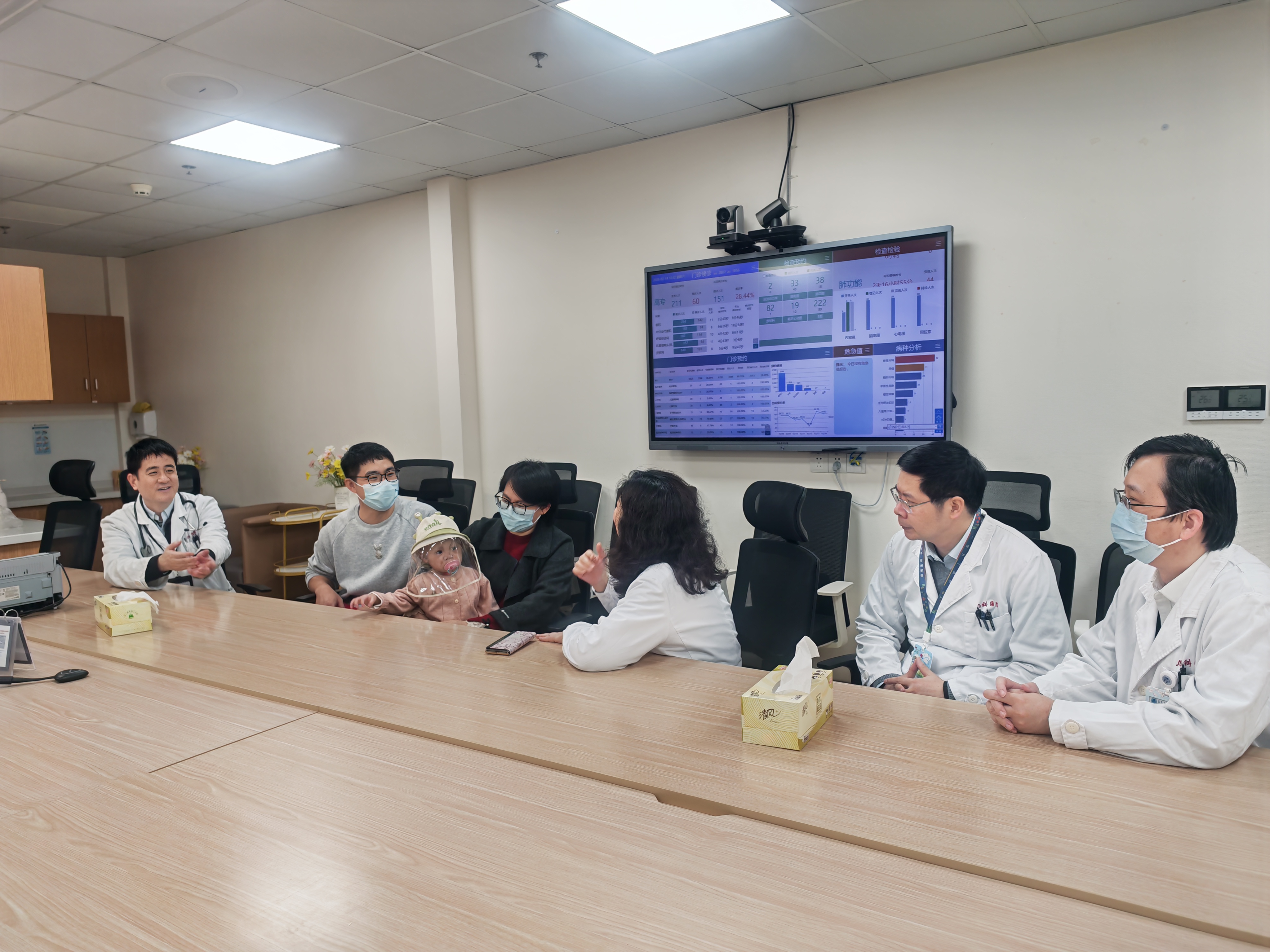 经过家庭讨论后,思思的父母一致决定冒险一搏,将其转到儿科医院救治,马上购买火车票,携带呼吸机,一路将思思转运来沪。2025年11月9日,通过医院开设的绿色通道,思思住进了临床免疫与过敏科病房,王晓川主任医师团队为其做好疾病诊断和评估,后转入血液科进行移植。