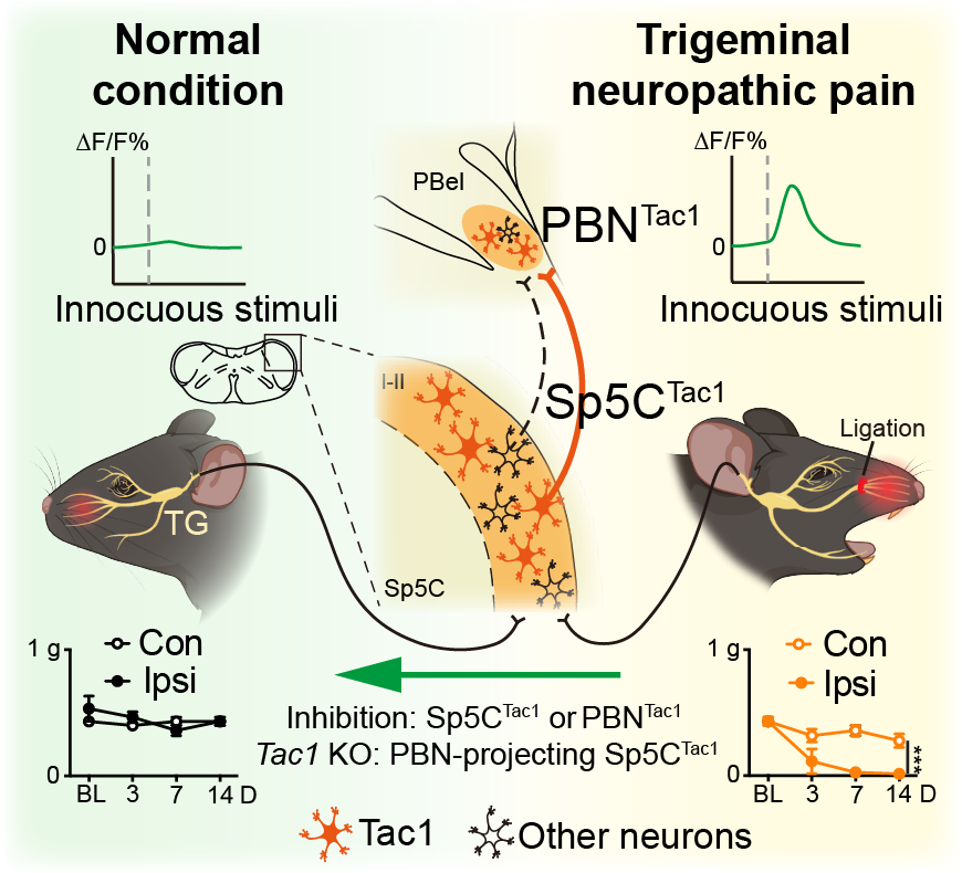 团队最终揭示了一条TG-Sp5CTac1-PBNTac1的神经环路,它是驱动三叉神经痛发生及发展的关键机制。
