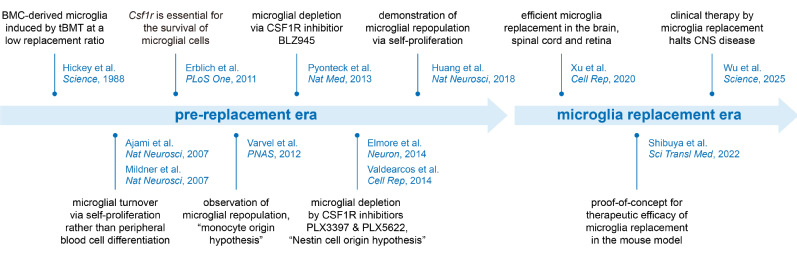 Figure 1 The evolution timeline of microglia replacement. (Image from Rao et al., Cell Stem Cell, 2025)