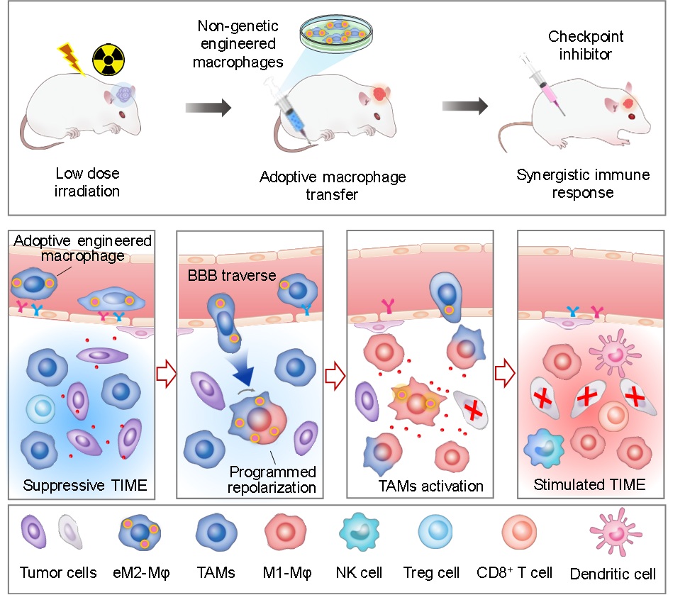 图1. 工程化过继巨噬细胞重塑肿瘤免疫微环境抑制脑胶质瘤生长