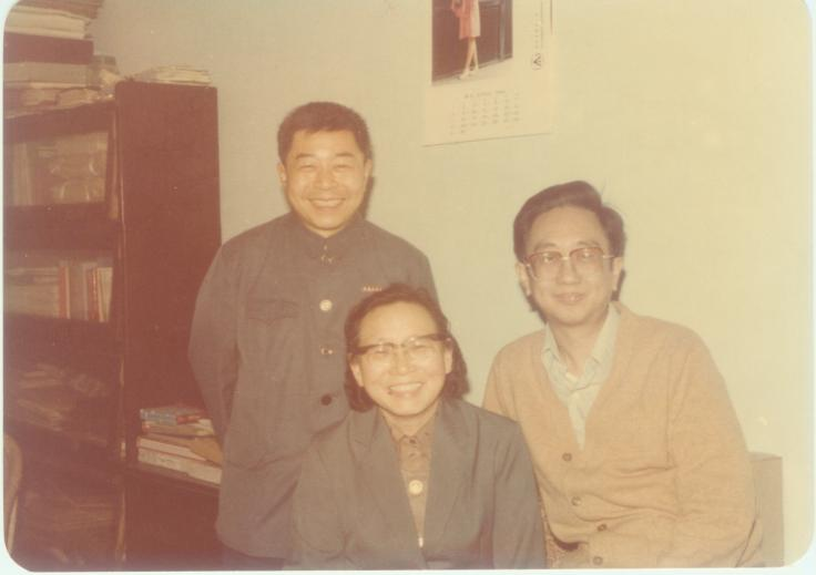 1983年,陈宏础(左一)、康格非(右一)接待卫生部临检中心主任叶应妩教授(中间)