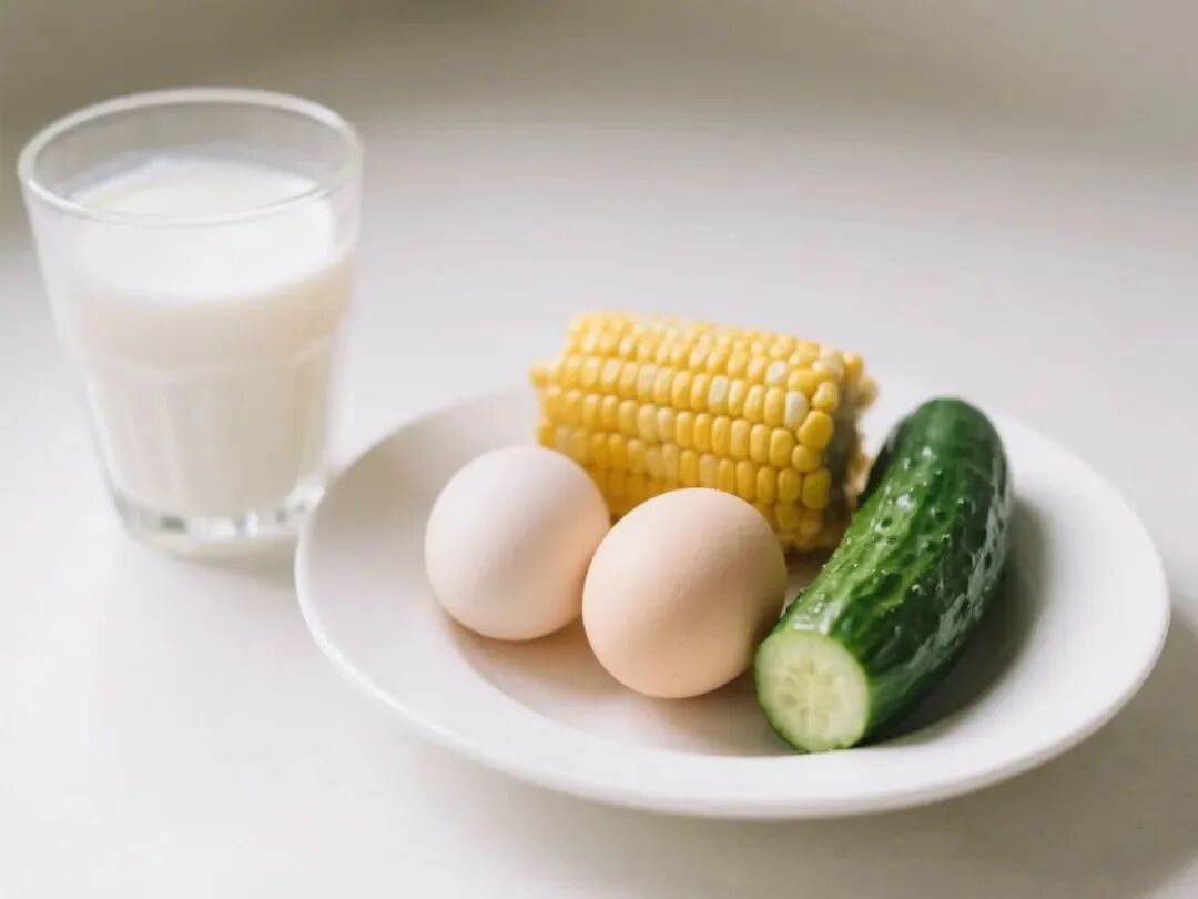 早餐(2个水煮蛋+1根玉米+1杯豆浆)