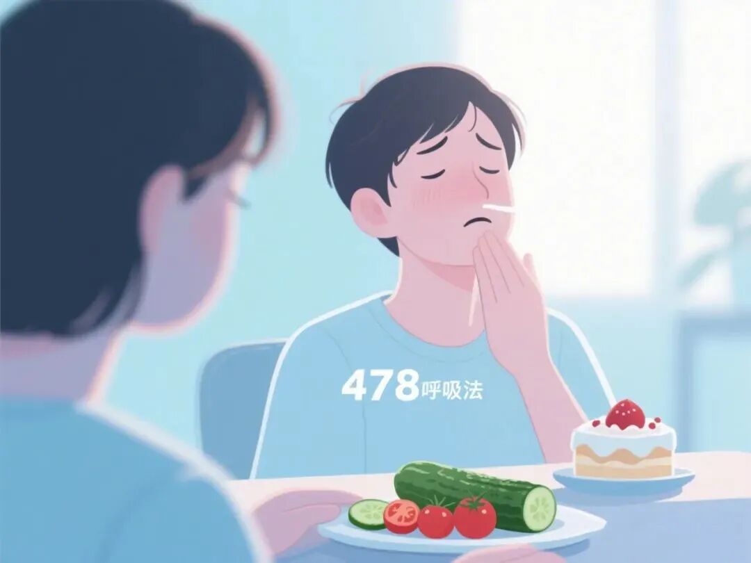 焦虑时尝试“478呼吸法”(吸气4秒、屏息7秒、呼气8秒),或准备低卡零食(如黄瓜、圣女果)替代甜品。