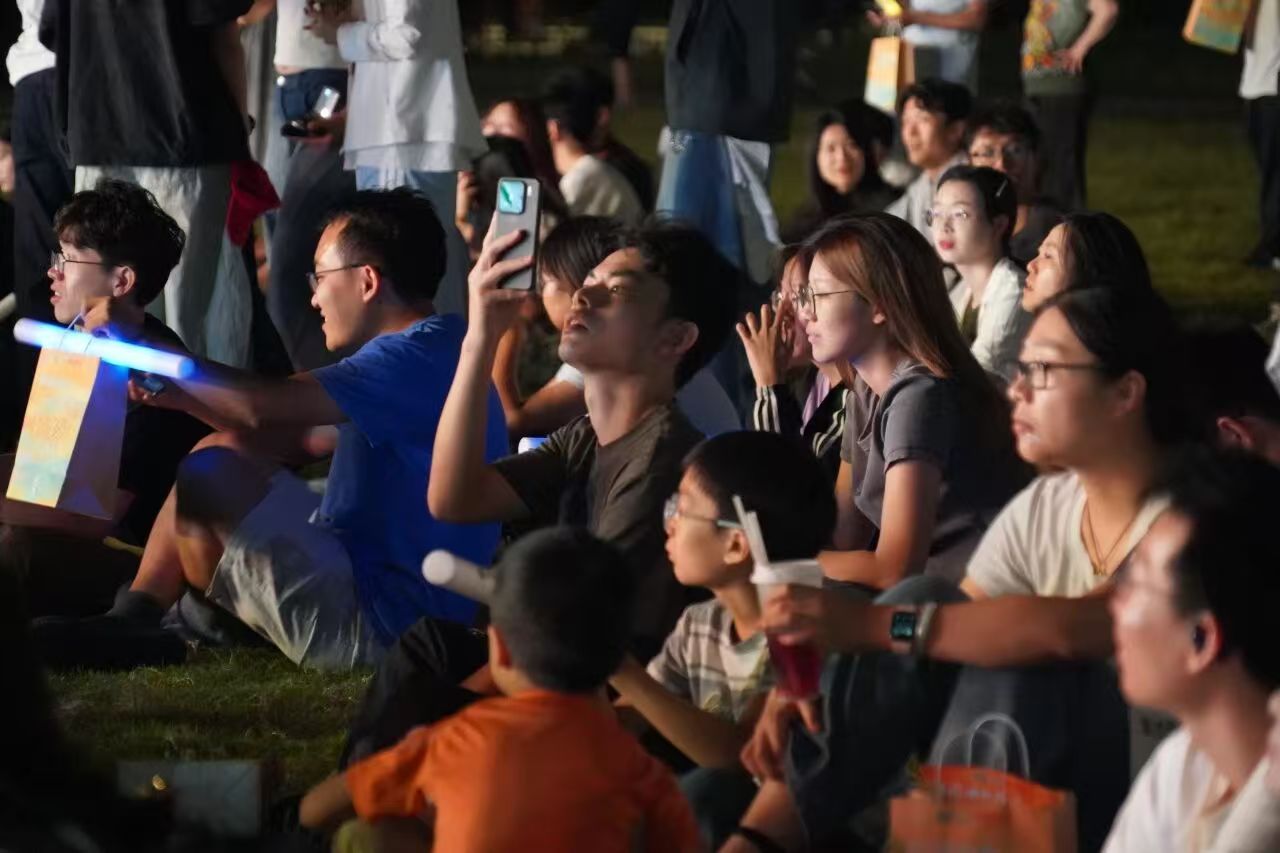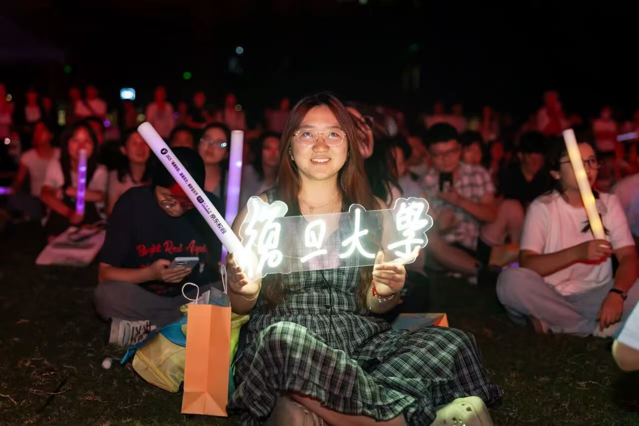 最后全场共同唱响《灯火里的中国》共同祝贺祖国盛世华诞!挥动手中的荧光棒,将对祖国的祝福、对校园的热爱融进歌声里,让草坪变成星光与歌声的海洋。