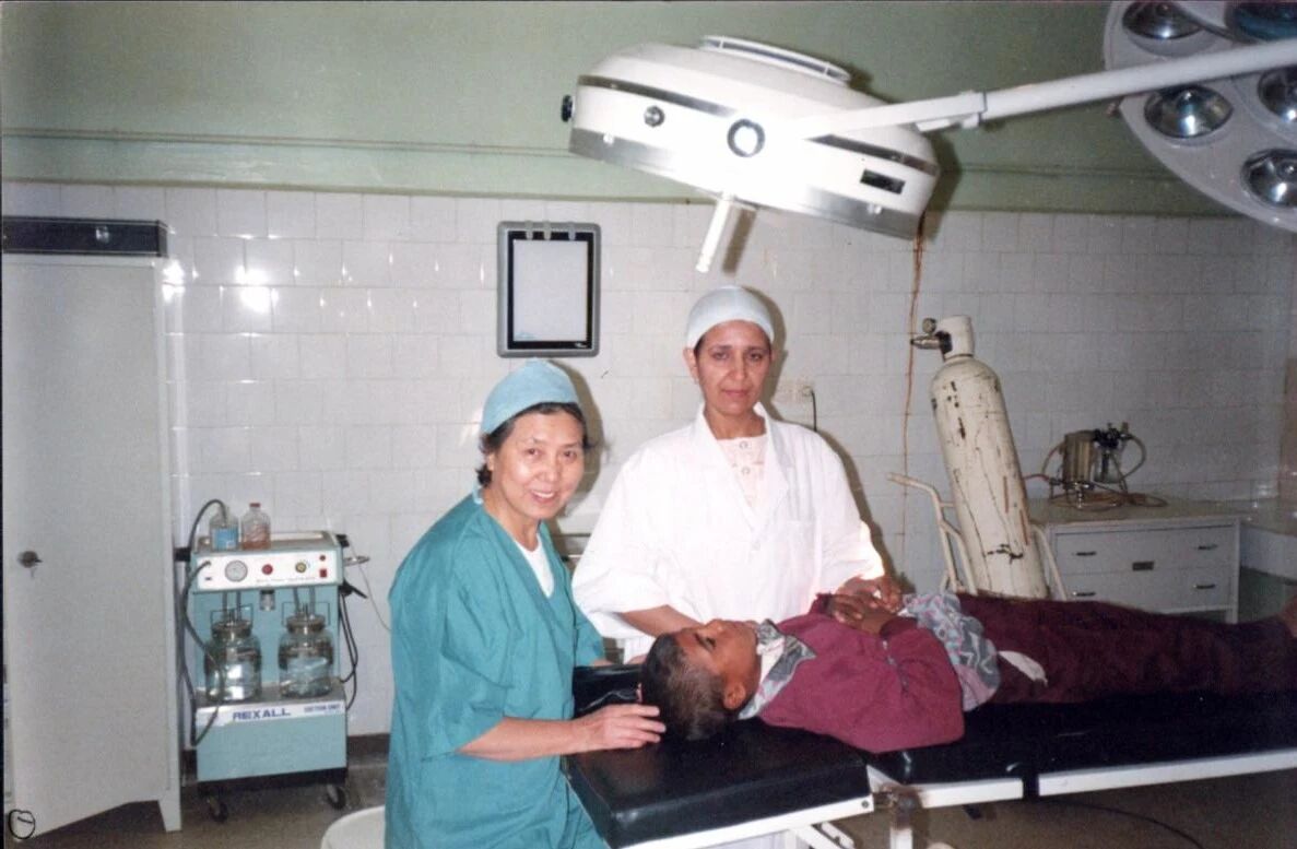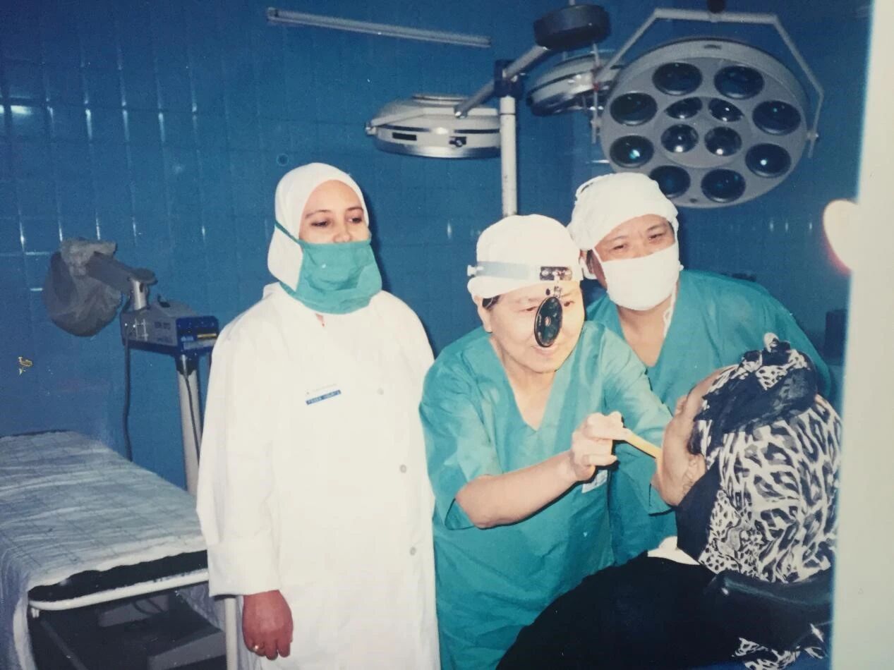 1998年,欧阳正玉(左2)在为病人做检查