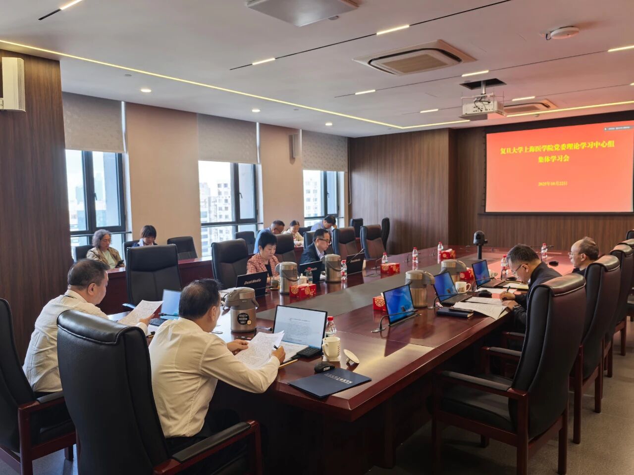 复旦大学上海医学院党委理论学习中心组今天上午举行集体学习会,结合重温习近平总书记重要贺信和重要勉励精神,认真学习《习近平谈治国理政》第五卷和《中国共产党思想政治工作条例》。复旦大学党委副书记、上海医学院党委书记袁正宏主持会议并讲话。校长、上海医学院院长金力及中心组全体成员参加学习。