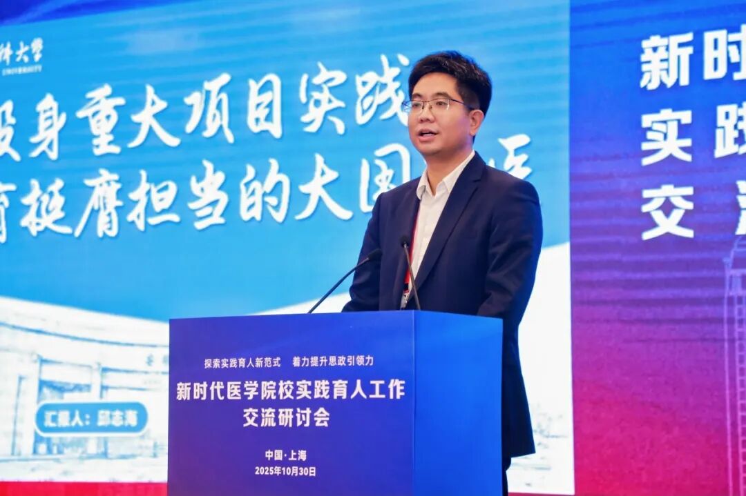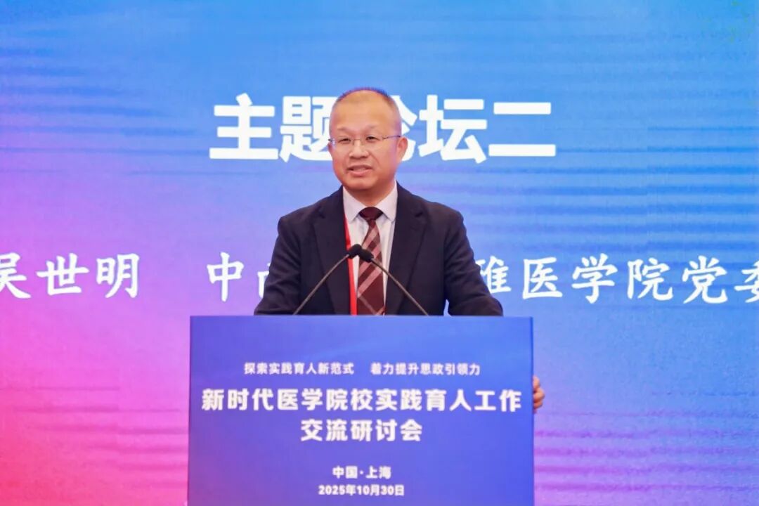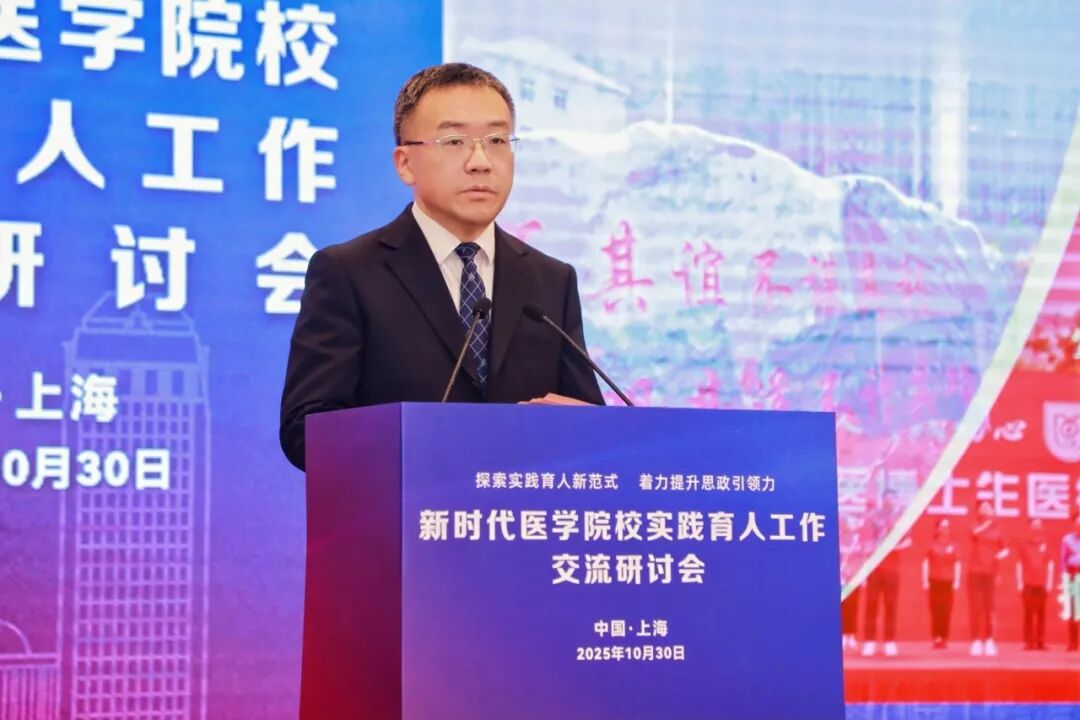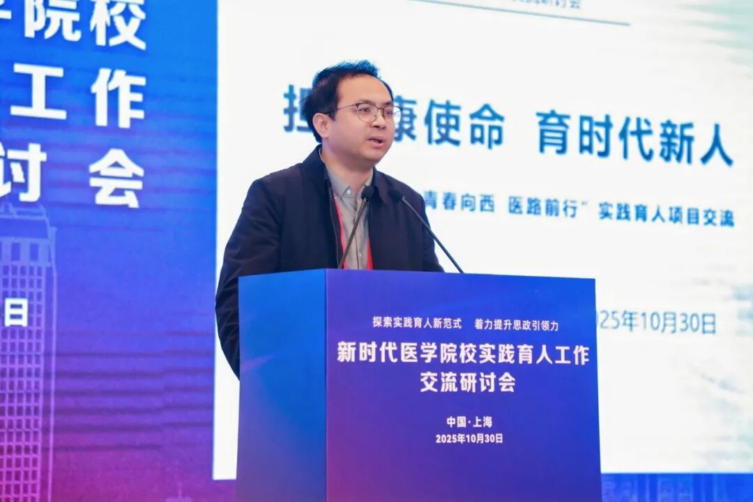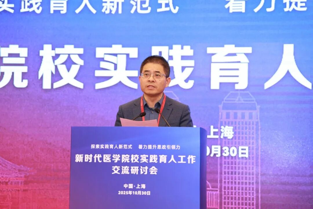 为深入学习贯彻习近平总书记重要贺信回信和勉励精神,推动医学院校更好地落实新时代立德树人工程特别是实践育人工作,2025年10月30日,由复旦大学上海医学院主办的“新时代医学院校实践育人工作交流研讨会”在上海举行。会议以“探索实践育人新范式,着力提升思政引领力”为主题,旨在深入学习贯彻习近平新时代中国特色社会主义思想,全面贯彻习近平总书记关于教育、科技、人才及卫生健康工作的重要论述,认真落实党的二十届四中全会精神和《教育强国建设规划纲要》部署,系统展示交流全国医学院校在实践育人方面的新成果新经验,共同研讨谋划推进新时代高校特别是医科院校实践育人范式创新,不断提升思政引领力和立德树人成效。