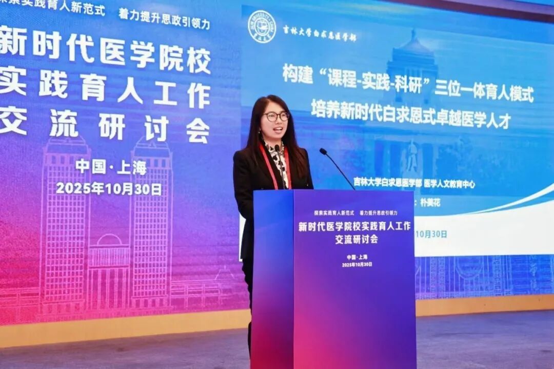 吉林大学白求恩医学部医学人文教育中心副主任朴美花作“构建‘课程-实践-科研’三位一体育人模式,培育新时代白求恩式卓越医学人才的探索与实践”报告