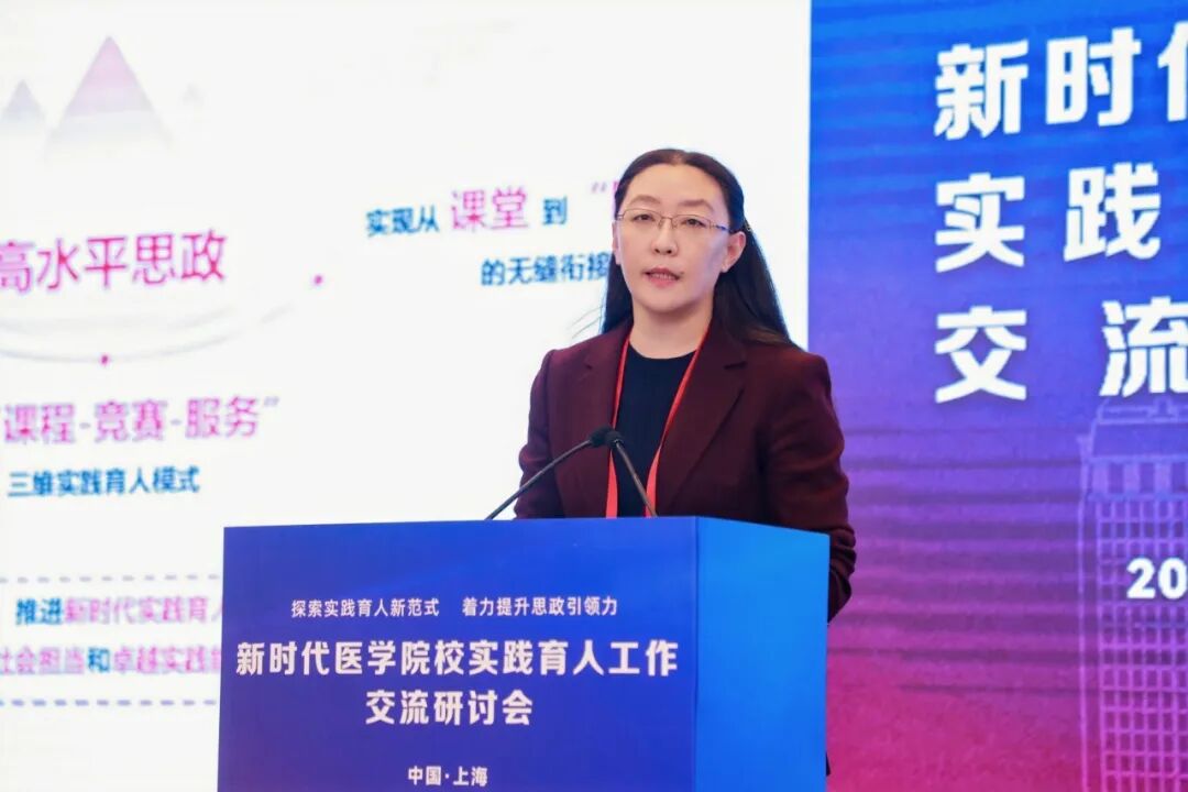 哈尔滨医科大学党委副书记东梅作“从课堂到‘医’线:哈医大实践育人的‘课程-竞赛-服务’三维突破”报告