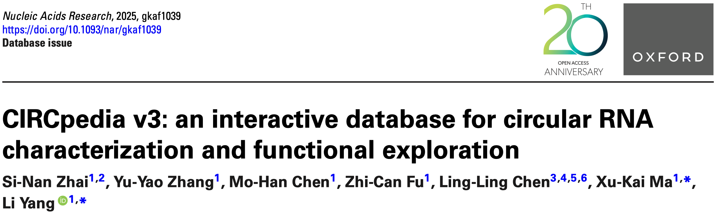 2025年10月22日,复旦大学生物医学研究院/复旦大学附属儿科医院杨力团队在《核酸研究》(Nucleic Acids Research)在线发表了题为“CIRCpedia v3: an interactive database for circular RNA characterization and functional exploration”的论文,报道了升级版的环形RNA数据库CIRCpedia,系统性整合了来自20个物种的2413个RNA测序样本,覆盖了203种组织类型和375种细胞系以及多种亚细胞组分,注释了超过260万个环形RNA。该成果为环形RNA研究提供了涵盖表达鉴定、功能预测到实验验证设计的一站式综合数据资源平台,为环形RNA领域的深入研究提供了有力的数据基础和技术预测支撑。