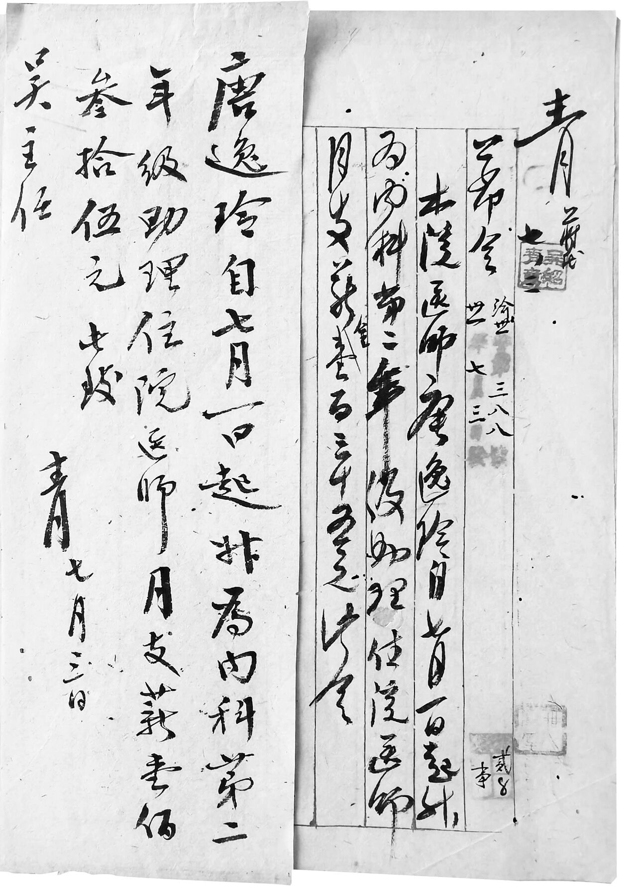 1942年,吴绍青草拟和正式书写的批示