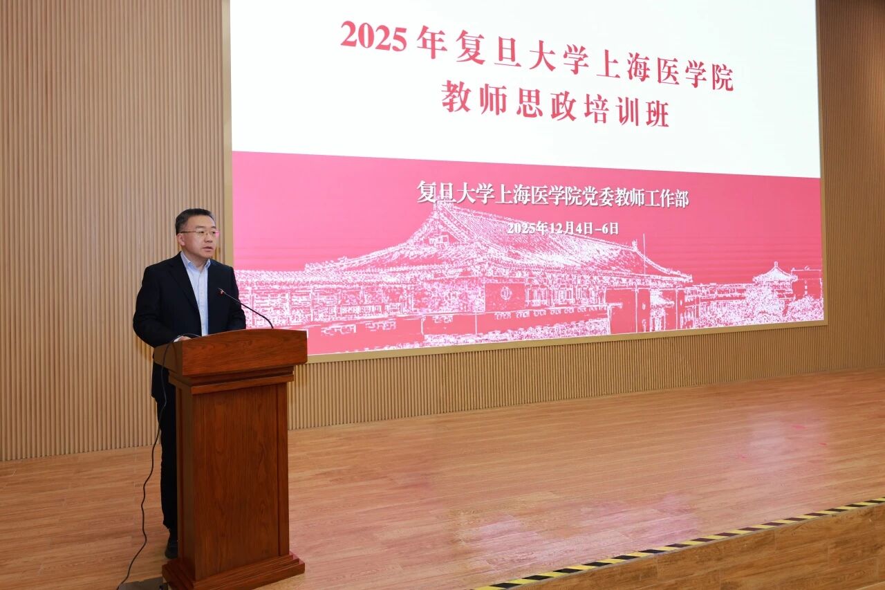 为深入学习贯彻习近平新时代中国特色社会主义思想和党的二十届四中全会精神,学习习近平总书记关于教育的重要论述,锚定立德树人根本任务,以教育家精神引领教师队伍建设,推动思政教育与医学教学、科研、育人全链条深度融合,2025年12月4日至6日,复旦大学上海医学院2025年教师思政专题培训班在枫林校区二号科研楼B1报告厅举办。来自14家院所平台及12家附属医院的60位一线教师与基层干部参加培训。
