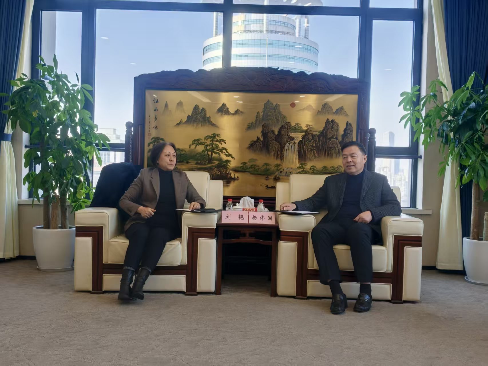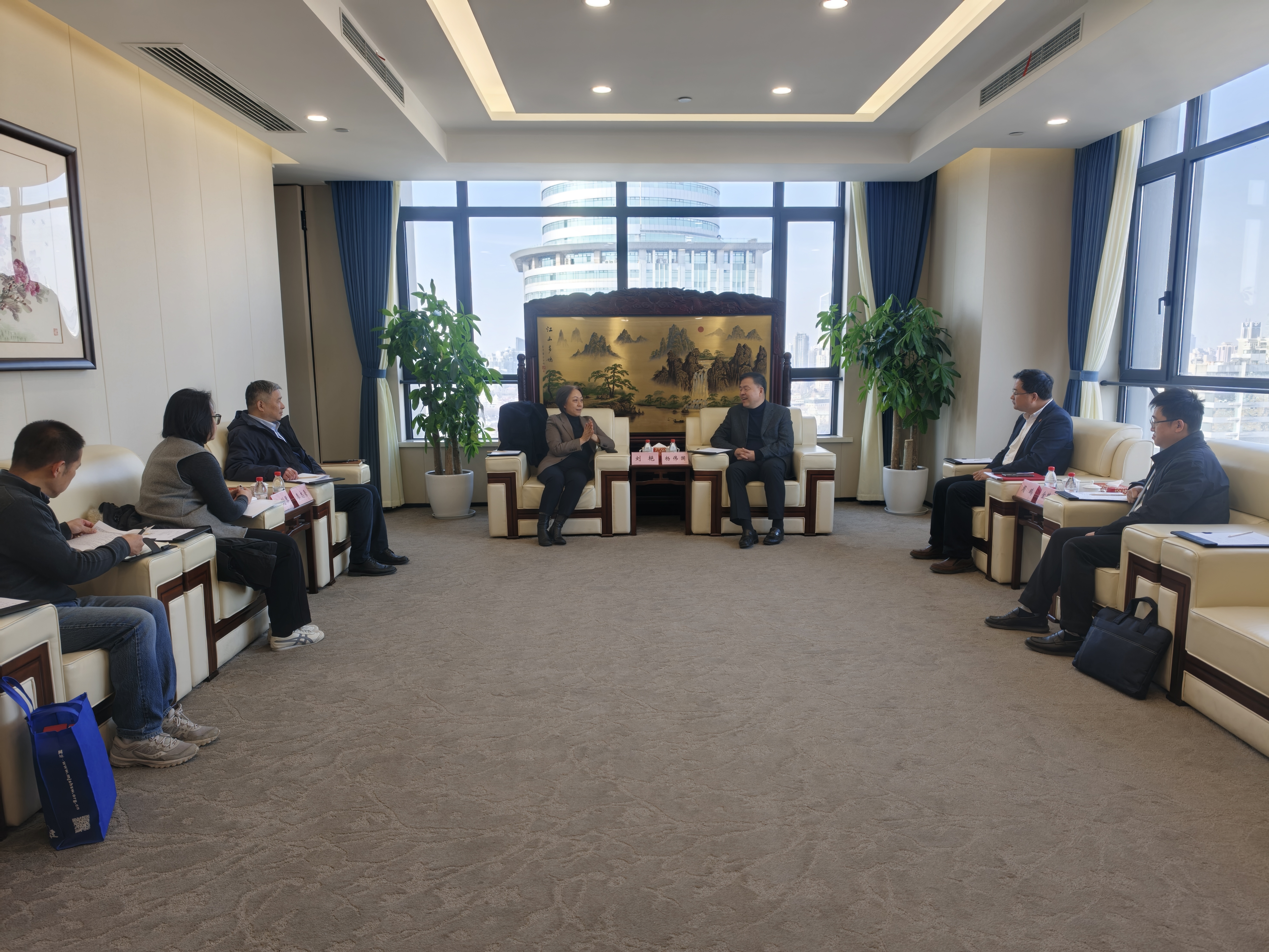1月22日下午,台盟上海市委主委刘艳一行赴复旦大学上海医学院,亲切看望在此挂职的干部金贇杰,并开展座谈交流。复旦大学上海医学院党委副书记杨伟国出席座谈会。
