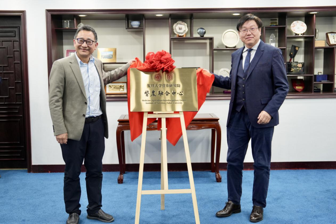会后,复旦大学营养研究院医农融合中心揭牌仪式举行。复旦大学营养研究院医农融合中心积极响应“健康中国”与“乡村振兴”国家战略,致力于推动医学与农业的深度融合,以健康需求引导农业创新,以营养成果赋能全民健康。中心聚焦功能农产品与健康食品的循证创制与开发、个体化精准营养的机制解析与智能干预、食物系统转型中的营养健康与可持续性研究、食品营养健康的标准法规与食品安全的智慧监管体系构建等重点方向,构建从科学研究到产业应用的跨学科全链条创新体系,旨在成为引领医农交叉发展、服务人民健康与农业农村现代化的新平台。