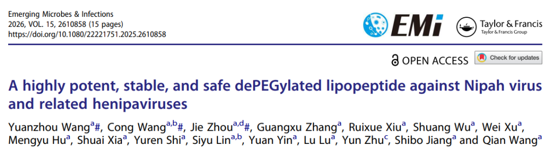点击图片阅读:EMI丨姜世勃/陆路/王茜团队研发出高效、安全、稳定的抗尼帕病毒脂肽,为应对尼帕疫情提供新利器