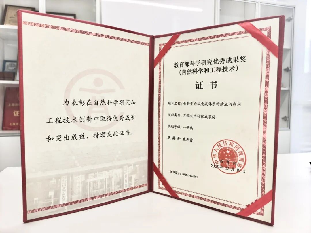 复旦大学基础医学院抗体工程与新药研发课题组组长、上海合成免疫工程技术研究中心主任应天雷,正带领团队在合成免疫学这一充满无限可能的交叉学科道路上,为重大疾病治疗开辟“主动编程”的新赛道。近日,团队凭借《创新型合成免疫体系的建立与应用》项目斩获2025年教育部科学研究优秀成果奖(自然科学和工程技术)一等奖。