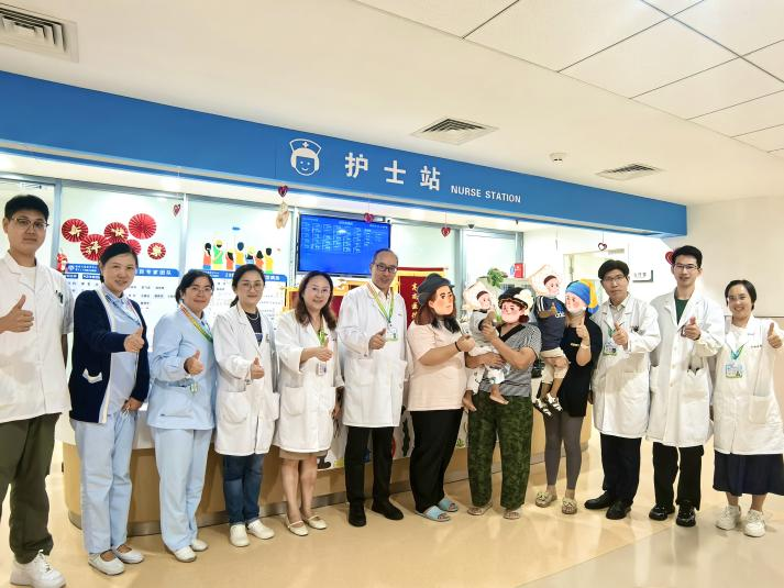 关志洪(右二)参与儿科医院儿童肝病中心联合研究型病房开展的阿拉杰里综合征的基因治疗,顺利完成两例给药