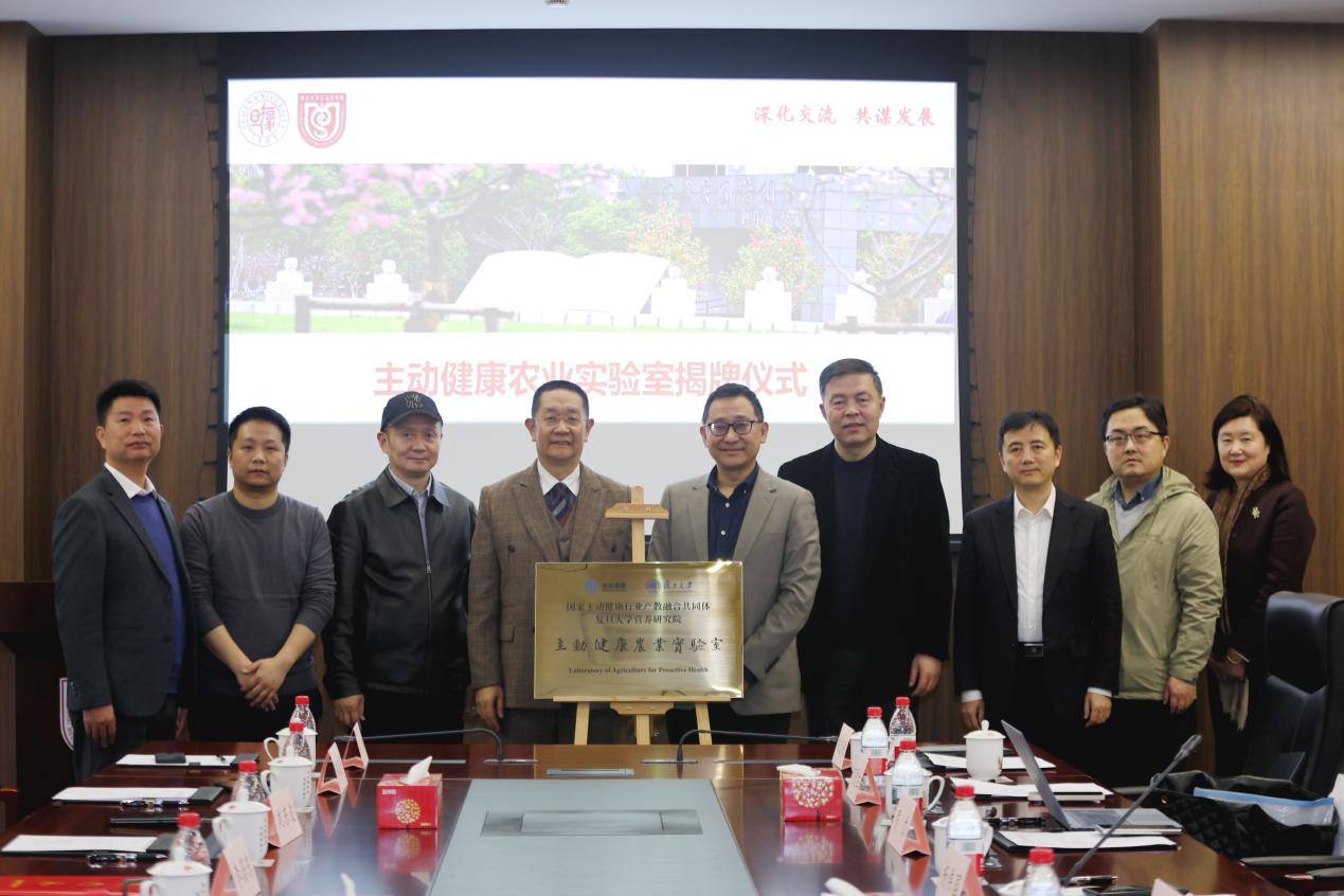 复旦大学营养研究院院长高翔教授与国家主动健康行业产教融合共同体首席科学家李蔚东教授共同为“主动健康农业实验室”揭牌。复旦大学公共卫生学院、生命科学学院,国家主动健康行业产教融合共同体有关出专家出席。