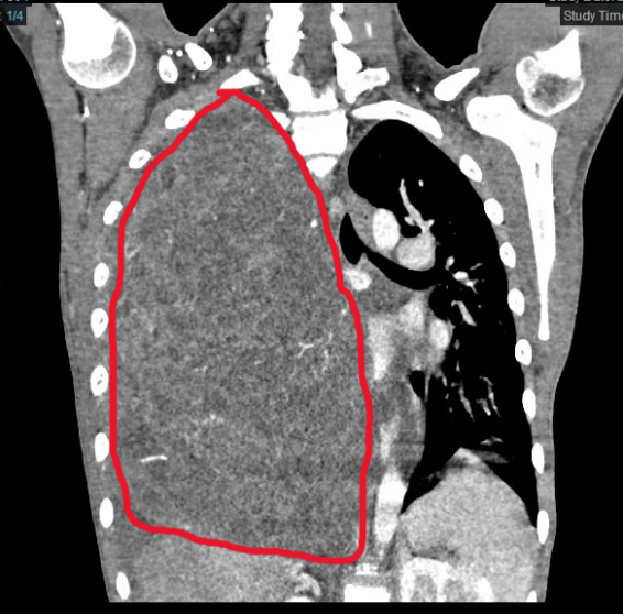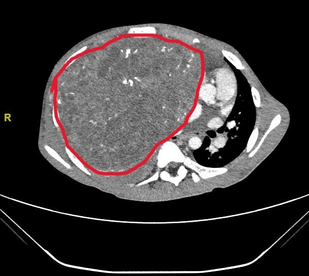 此前,小宇曾尝试手术切除,但因为术中出血难以控制,手术被迫中止,仅完成了肿瘤活检。随后的规范化疗也未能缩小肿瘤体积,疗效未达预期。随着病情持续恶化,小宇胸闷、呼吸困难等症状持续加重,生命悬于一线。