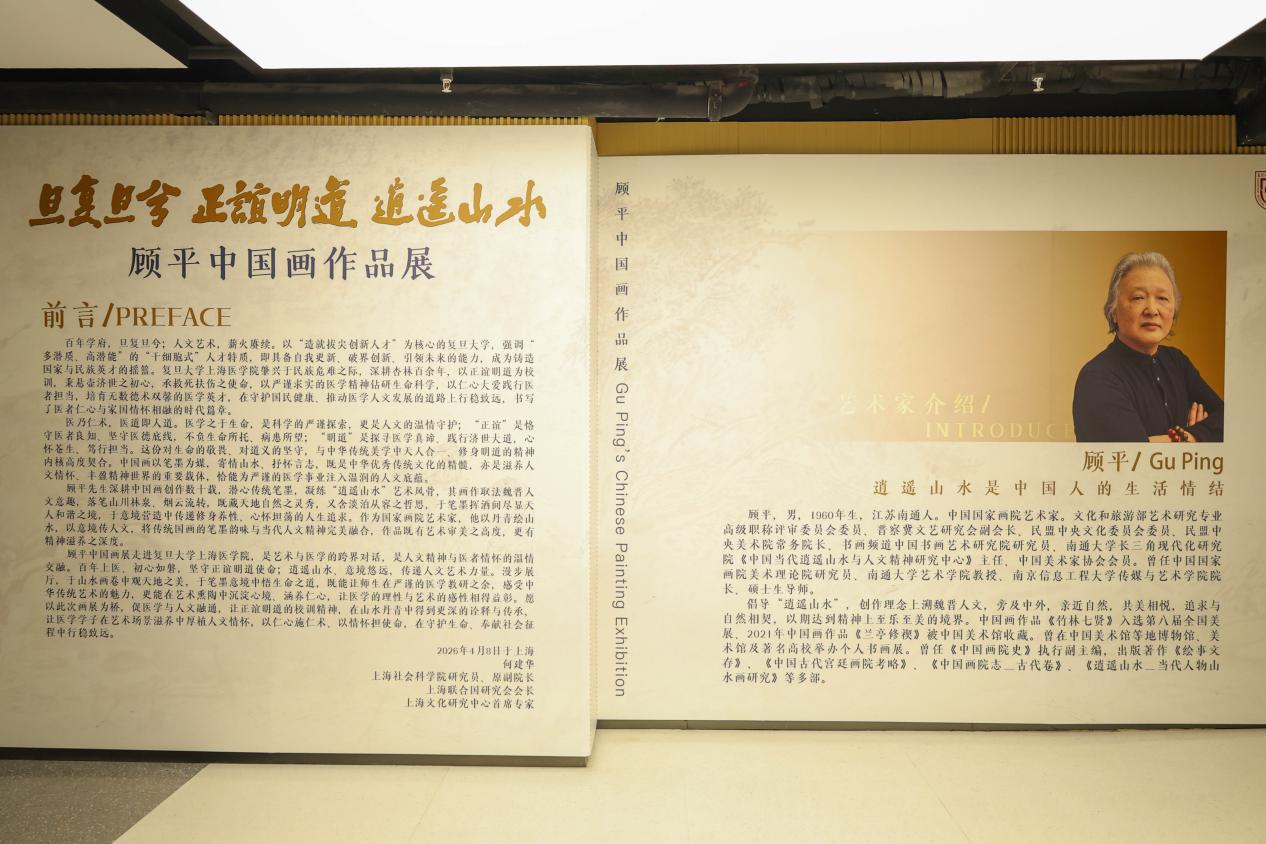 2026年4月16日,“旦复旦兮・正谊明道・逍遥山水”顾平中国画作品展在复旦大学上海医学院上医文化中心一楼临展厅正式开幕。画展以丹青笔墨联结艺术与医学,让人文精神与医者使命深度交融,为师生带来一场兼具传统底蕴与时代温度的艺术盛宴。