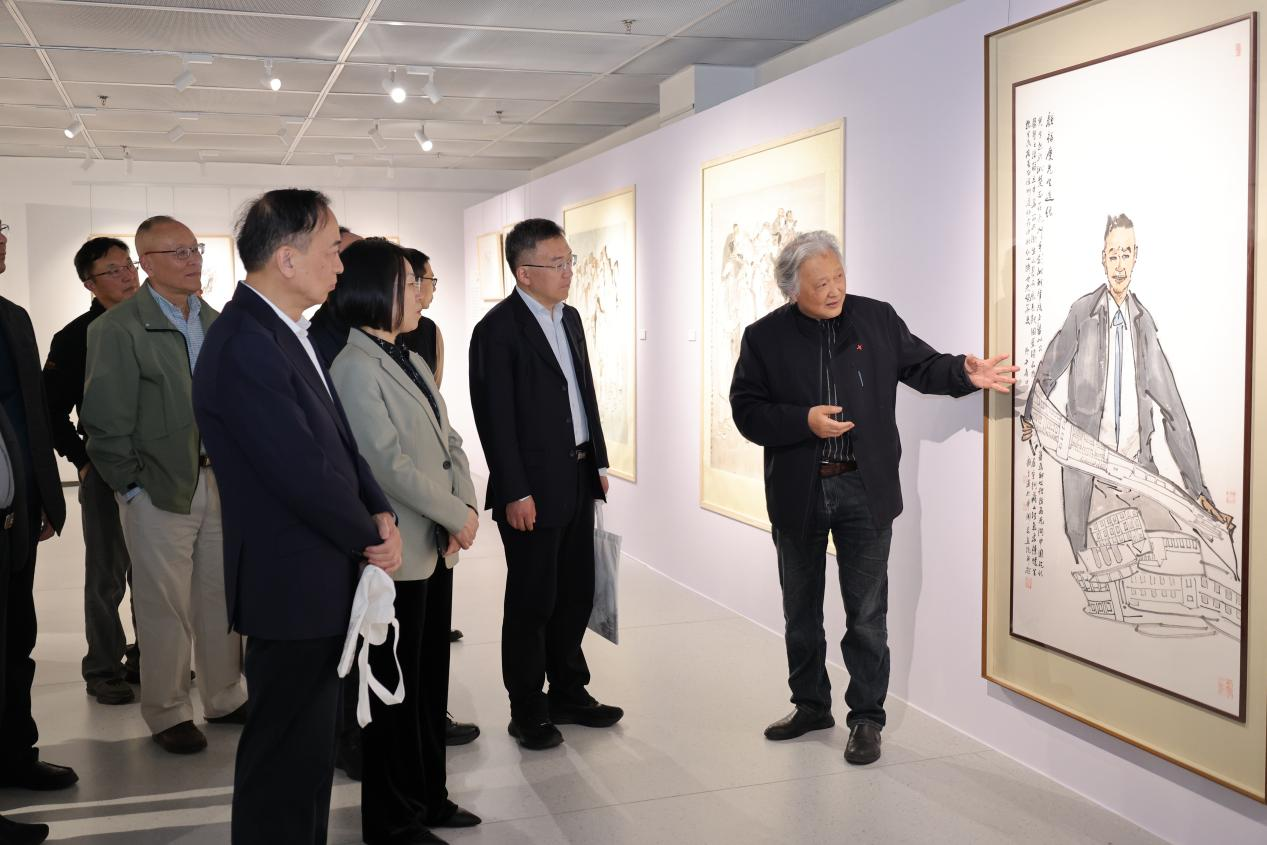 开幕仪式后,顾平为嘉宾导览画展,细致解读作品内涵。画展主题丰富、意境高远,墨韵流转间彰显着中华美学精神的生命力。集中呈现顾平近年来来创作的山水人物题材佳作60余件,是顾平深耕传统、守正创新的艺术成果,其“以人为心、以山为脉”的当代人物山水画范式,将“天人合一、逍遥自在”的哲思融入笔墨,作品既承载魏晋名士风流,又彰显民族精神与时代情怀,更与复旦上医“正谊明道”的院训高度契合。