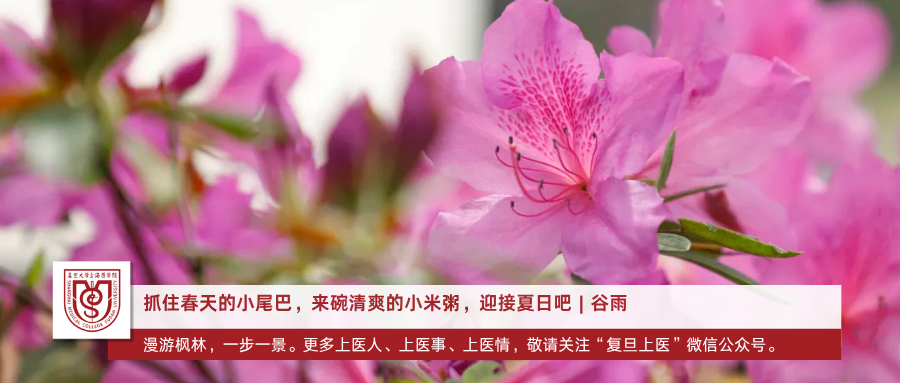 “杜鹃花发映山红。韶光觉正浓。”杜鹃花作为中国十大名花之一,其入药有行气活血、补虚等功能,治疗内伤咳嗽、肾虚耳聋、月经不调和风湿等病。锦绣杜鹃在复旦大学各个校区均有栽培,花大且密集。